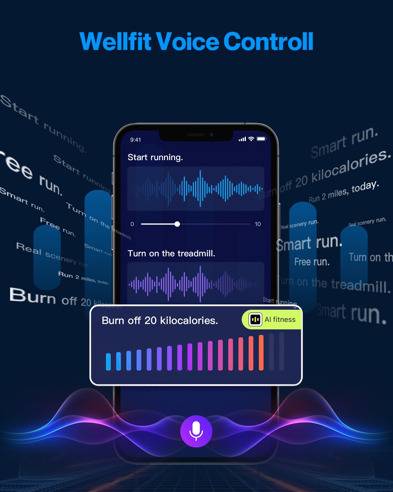 - Smart Voice Control: The new voice control feature of wellfit APP, easily controlled the treadmill while running or walking: Hi, choose a plan A! The WELLFIT App also offers a variety of pre-set workout programs that providing you with different challenges and goals to keep your workouts interesting and effective. No subscription fee! Furthermore,The treadmill also works with Kinomap, suitable to match different exercise habits.