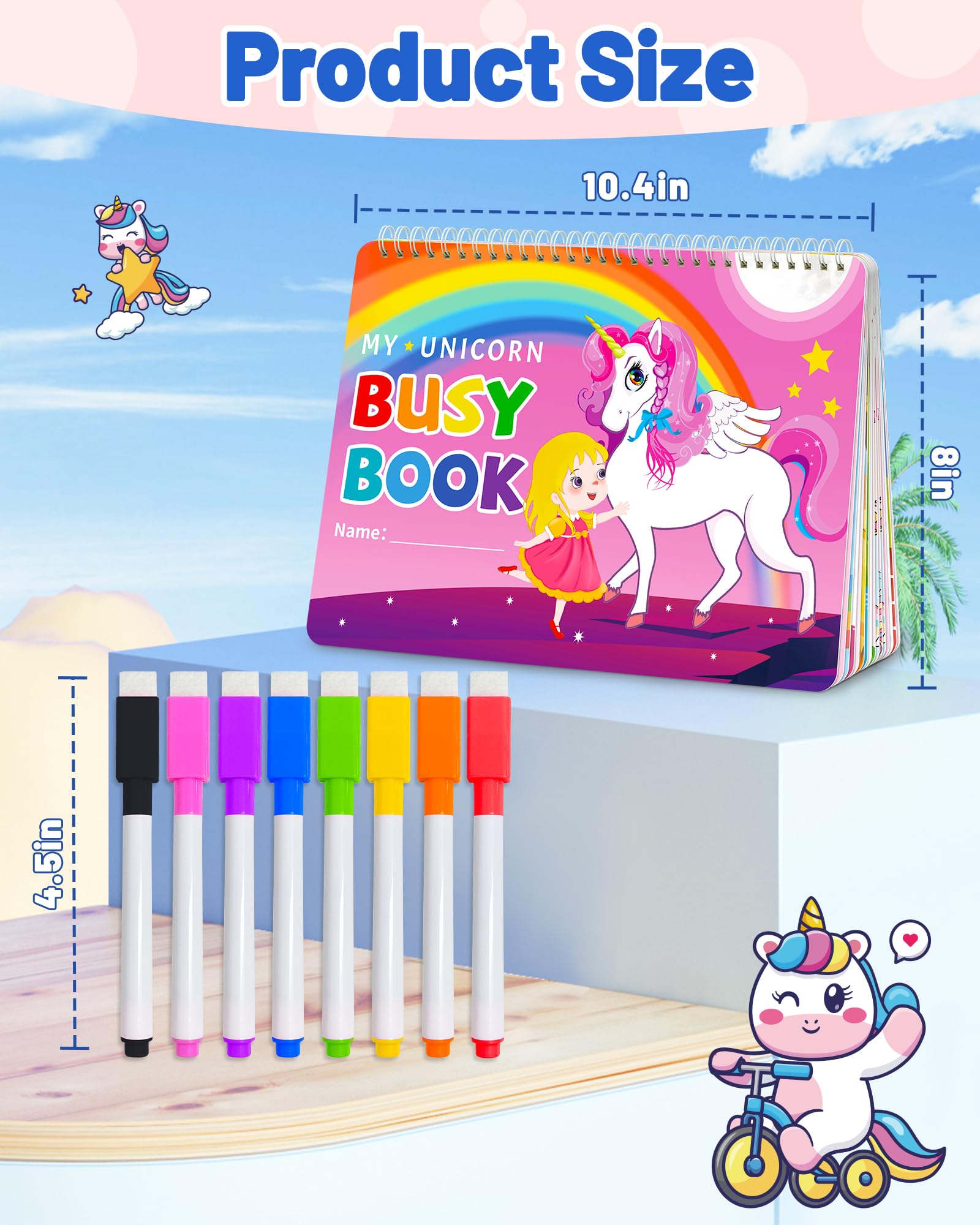 Unicorn Busy Book for Toddlers 3-5, Preschool Toddler Learning Activities Book, Educational Montessori Toys for 3 4 5 Year Old Girl Gifts, Busy Board Sticker Book for Toddler Travel Toys Workbook