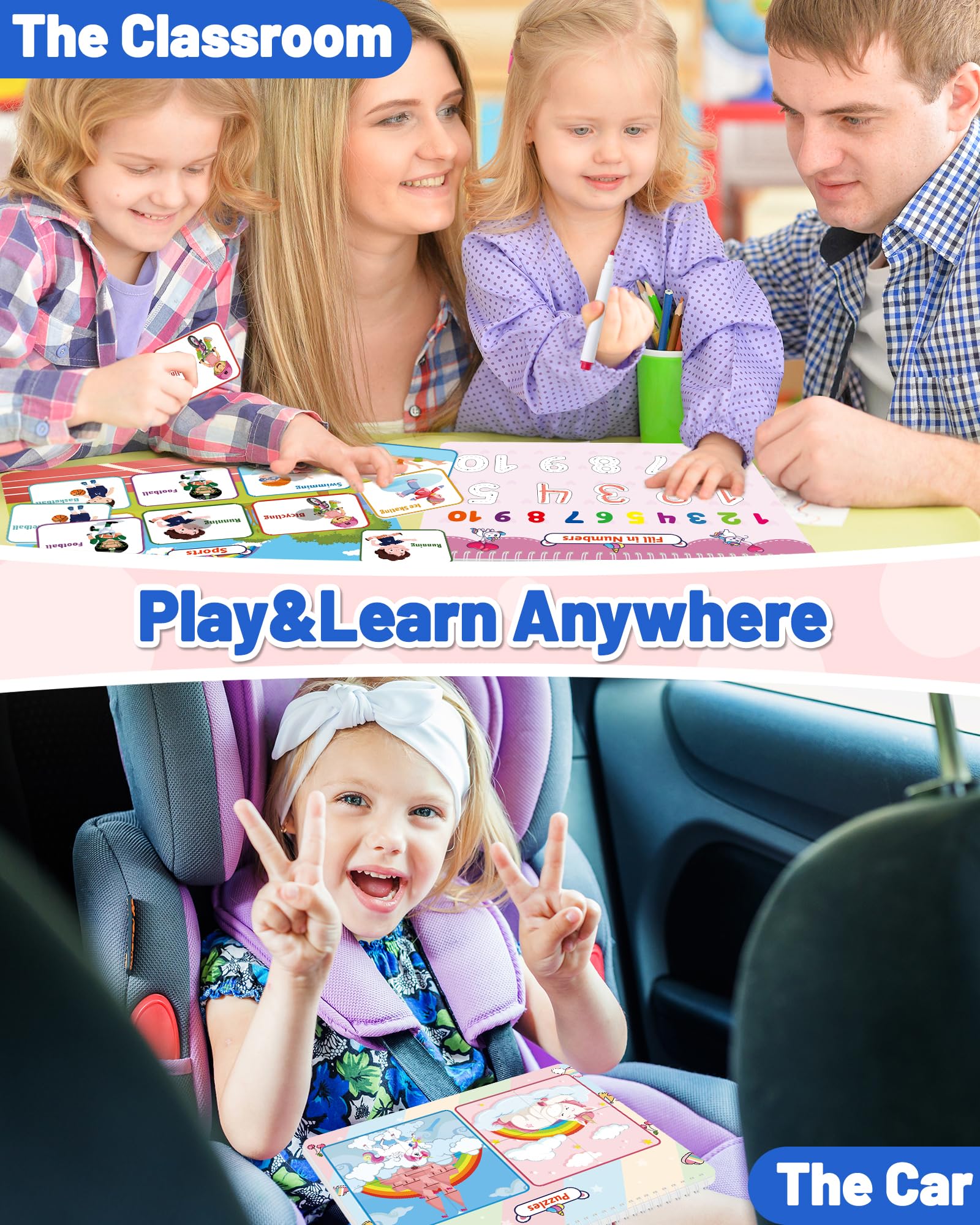 - Easy to Carry : My Preschool Busy Book Board is portable 10.4'x 8' - Toddler busy book for home school preschool education. Easily pack toddler travel activities to keep kids entertained in cars, planes and restaurants so you can enjoy quiet time while they do their preschool learning activities.