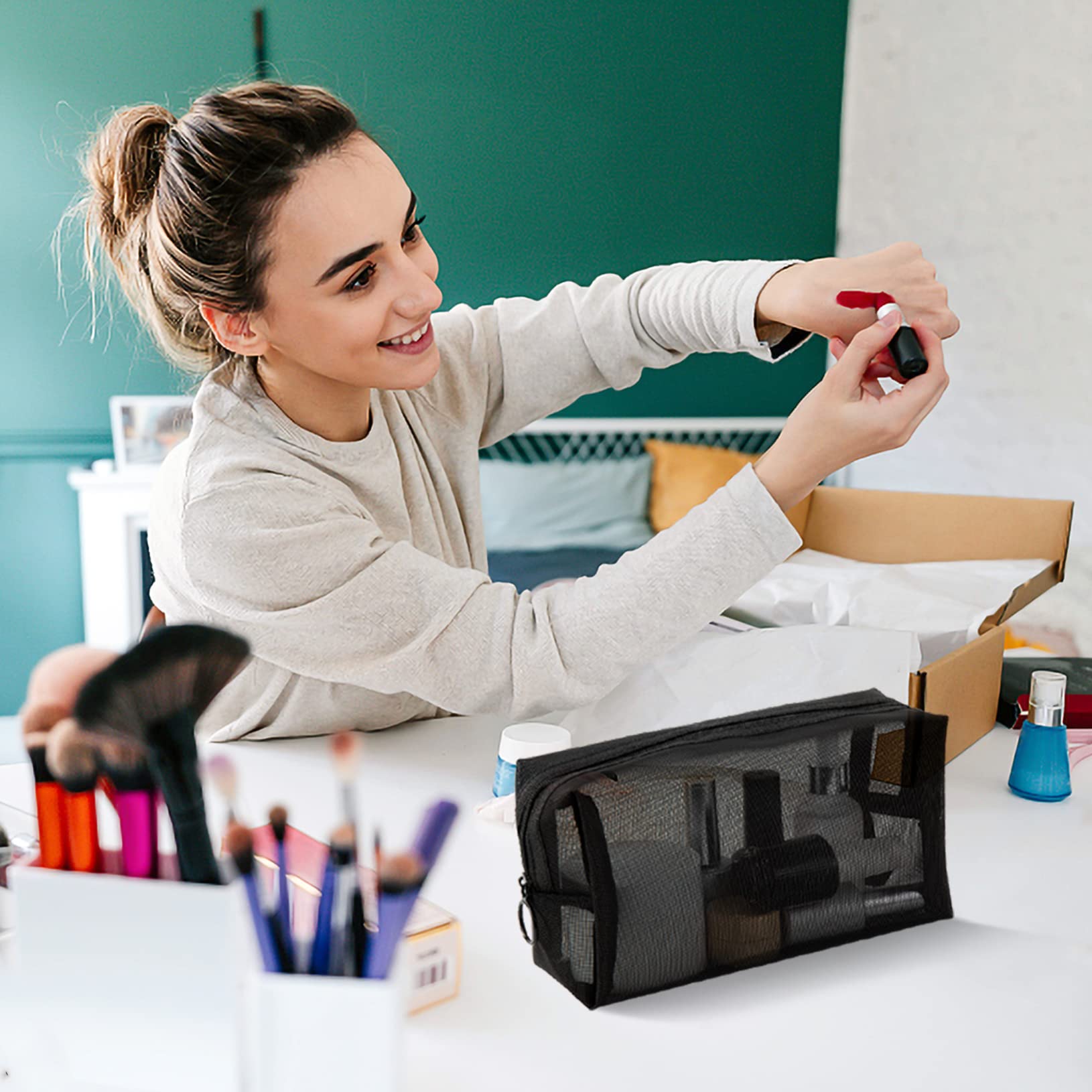 Unoutur pouch,Mesh Cosmetic Bag Portable Makeup Pouch Travel Toiletry Bag for Makeup Organizer Home Office Travel Accessories,6 Pieces Mesh Makeu