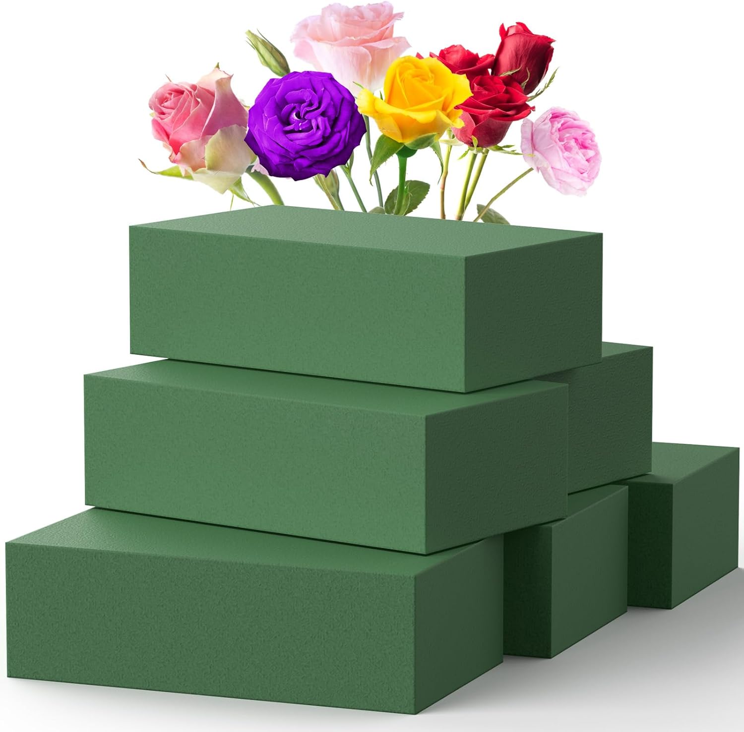 Upgraded 6 Pack Floral Flower Foam Blocks, Green Plant Foam for Flower Arrangements, Wet & Dry Florist Foam Styrofoam for Fresh and Artificial Flowers (5.5"L X 3.1"W X 1.6"H)