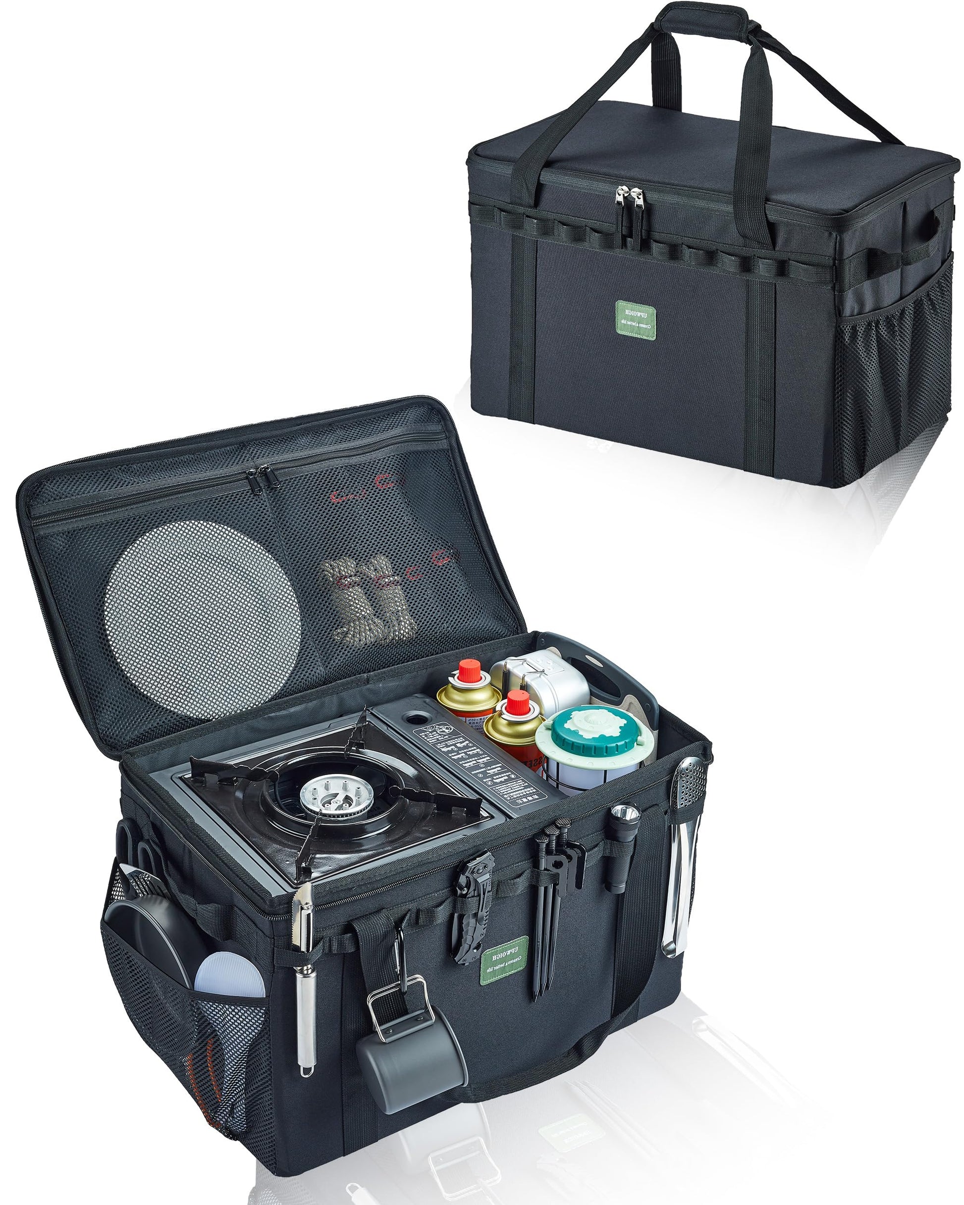 UPWOIGH Tactical Camping Storage Bag 40L – Heavy Duty Duffel with Waterproof Bottom, Collapsible Organizer with 2 Adjustable Dividers, 600D Oxford Fabric, Green Overlanding Gear