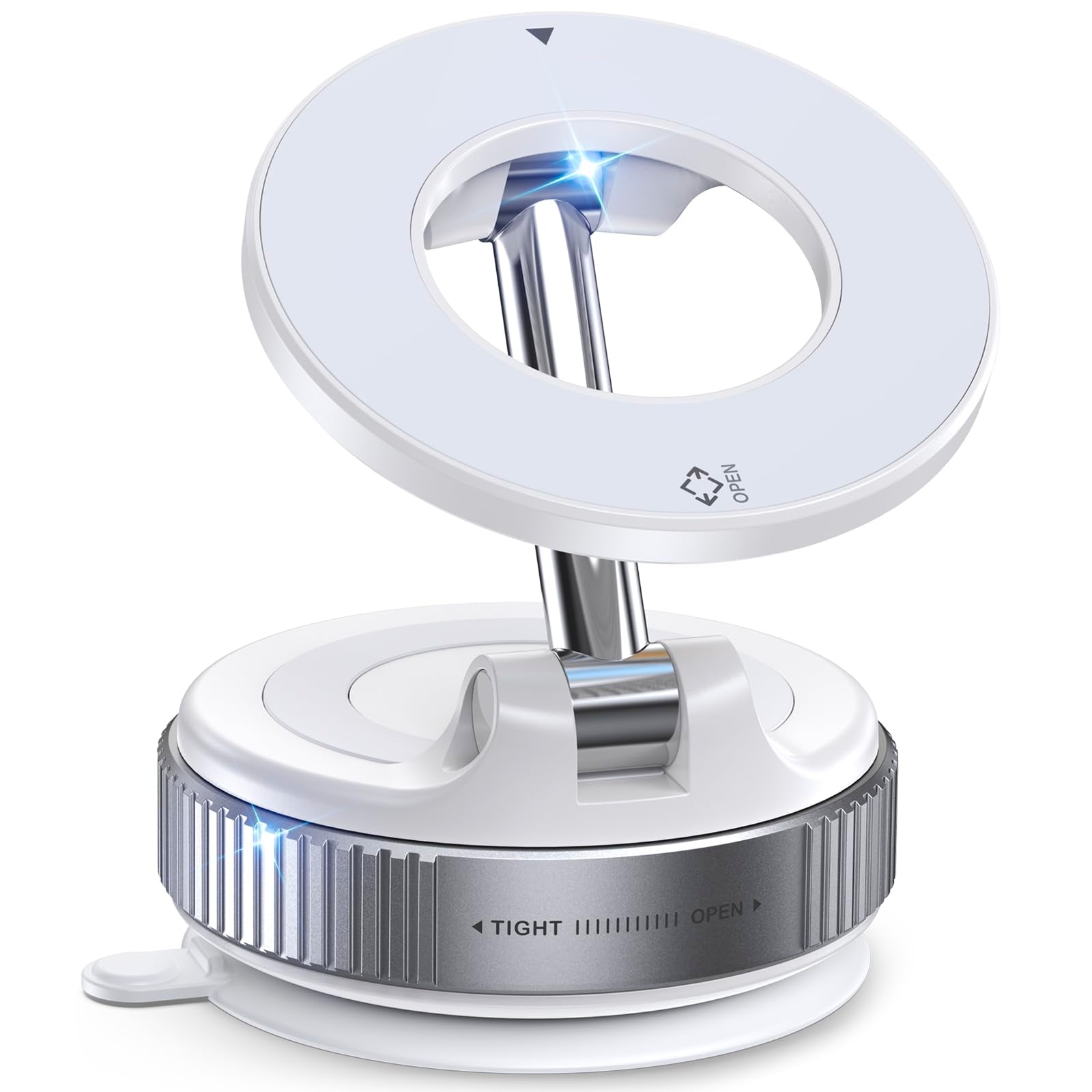 Vacuum Magnetic Suction Cup Phone Mount for Magsafe, 360° Adjustable Magnetic Phone Holder, Pocket Size Foldable Portable Cell Phone Holders for Your Car for All Smartphones & All Car Models