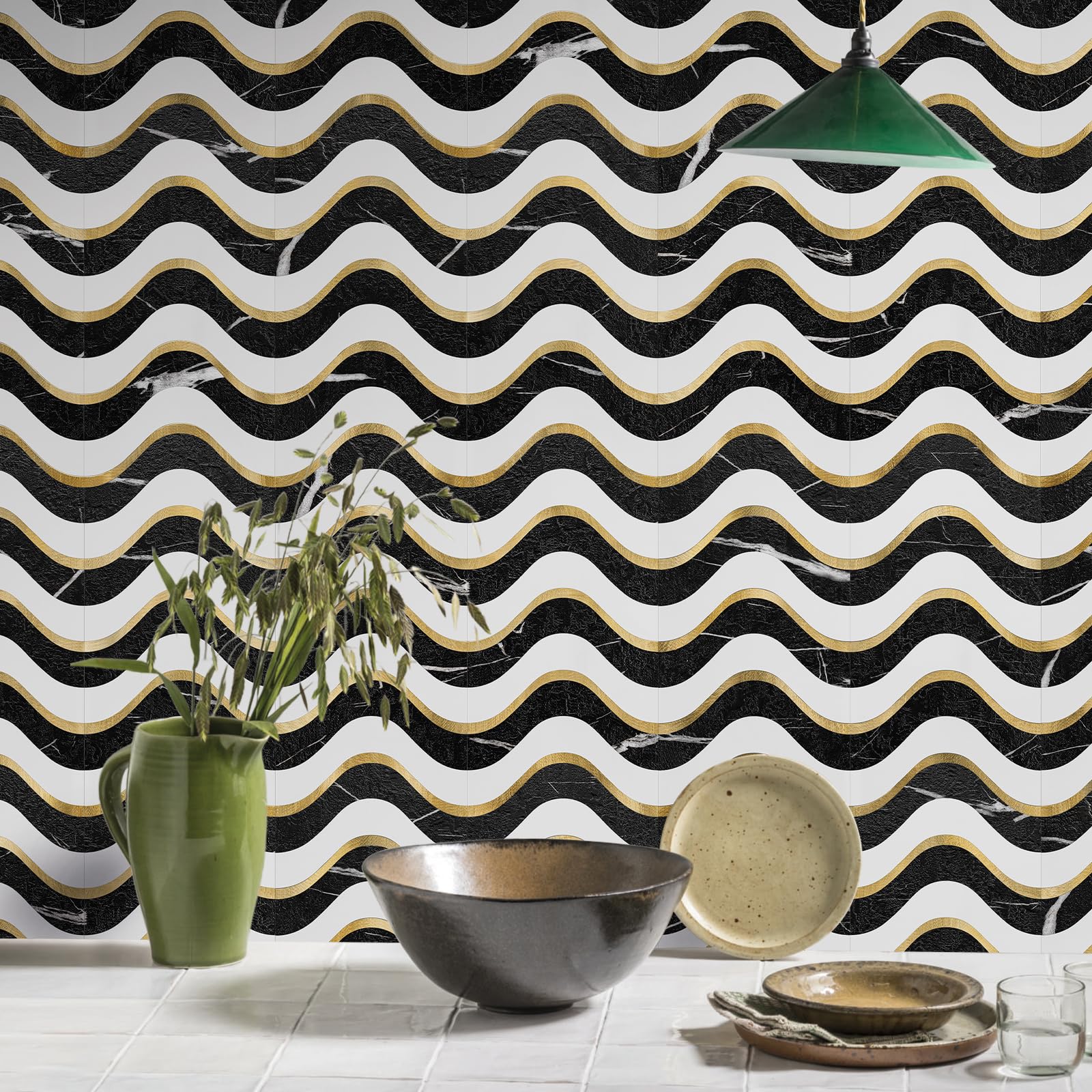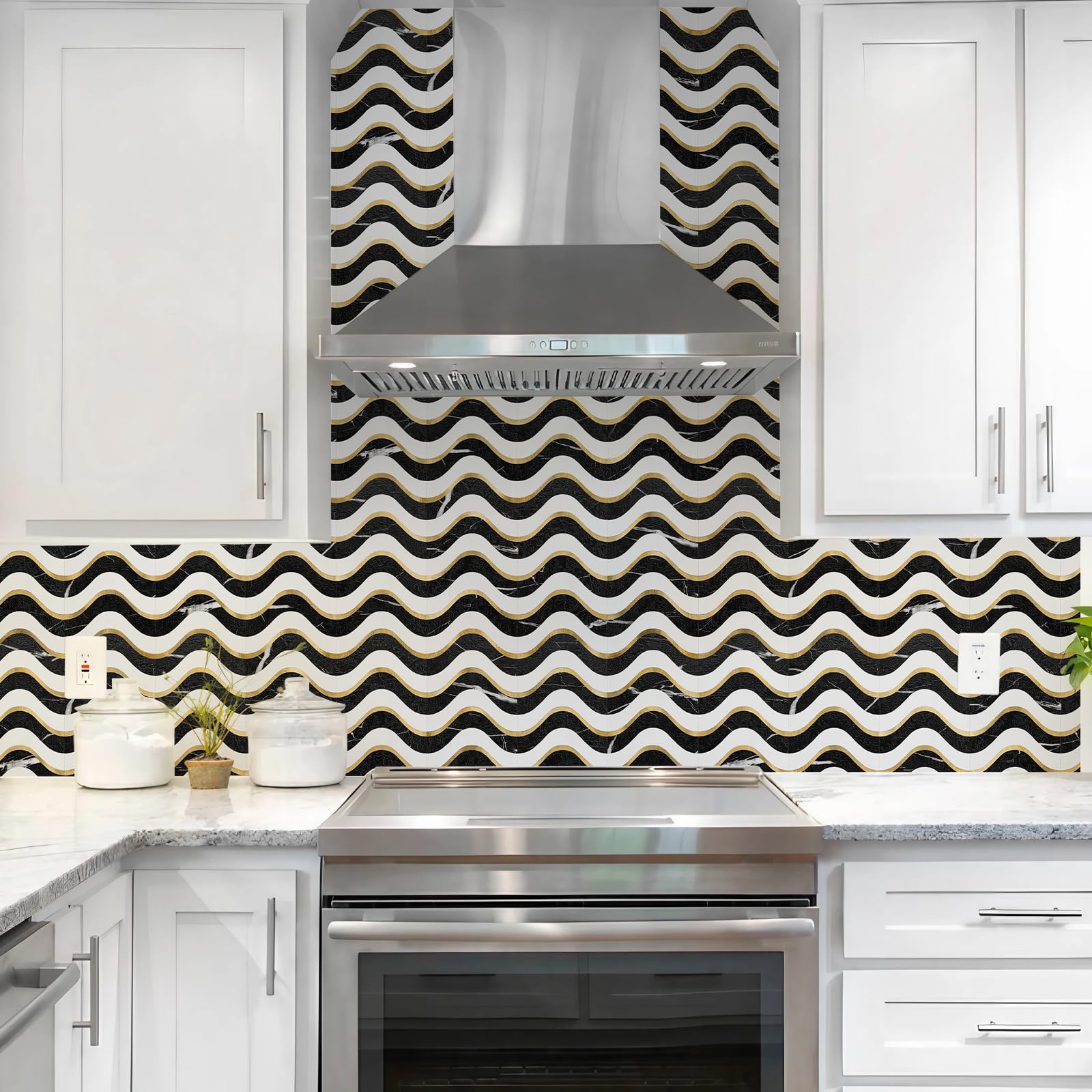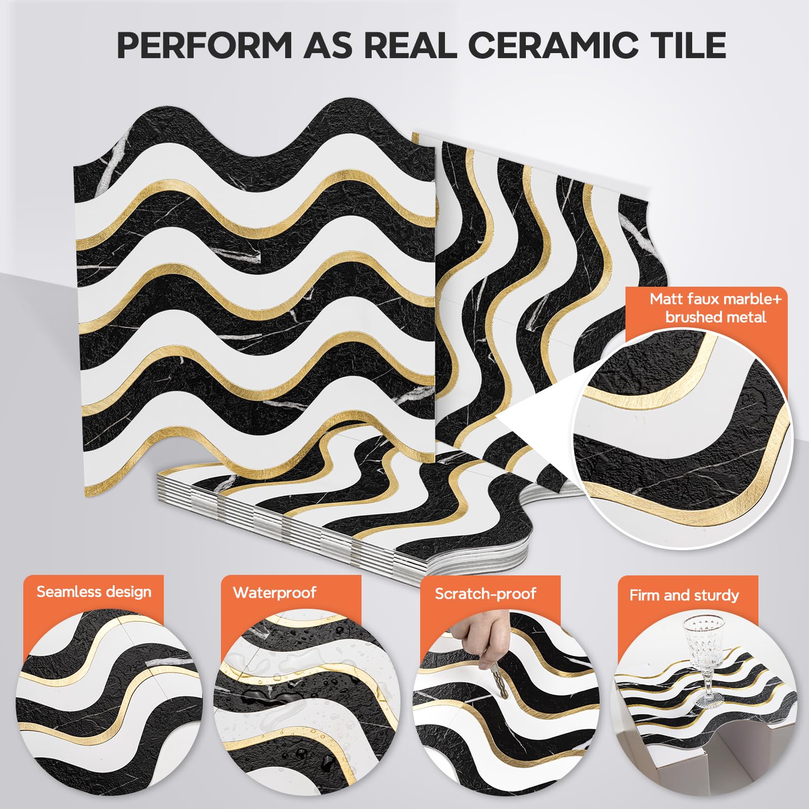 Vamos Tile 10-Sheet Peel and Stick Backsplash Seamless Tile,Stick on Backsplash for Kitchen and Bathroom, Black Marble Look+ Pure White PVC Mixed Metal Gold Self Adhesive Wall Tiles