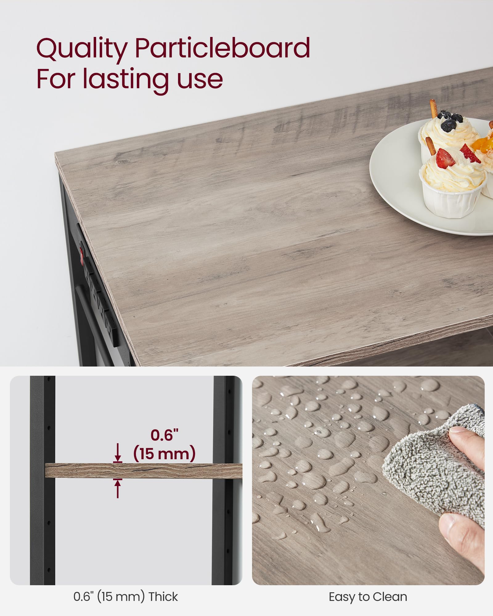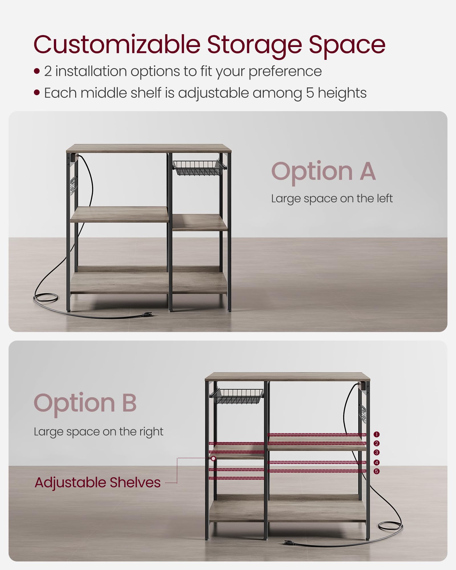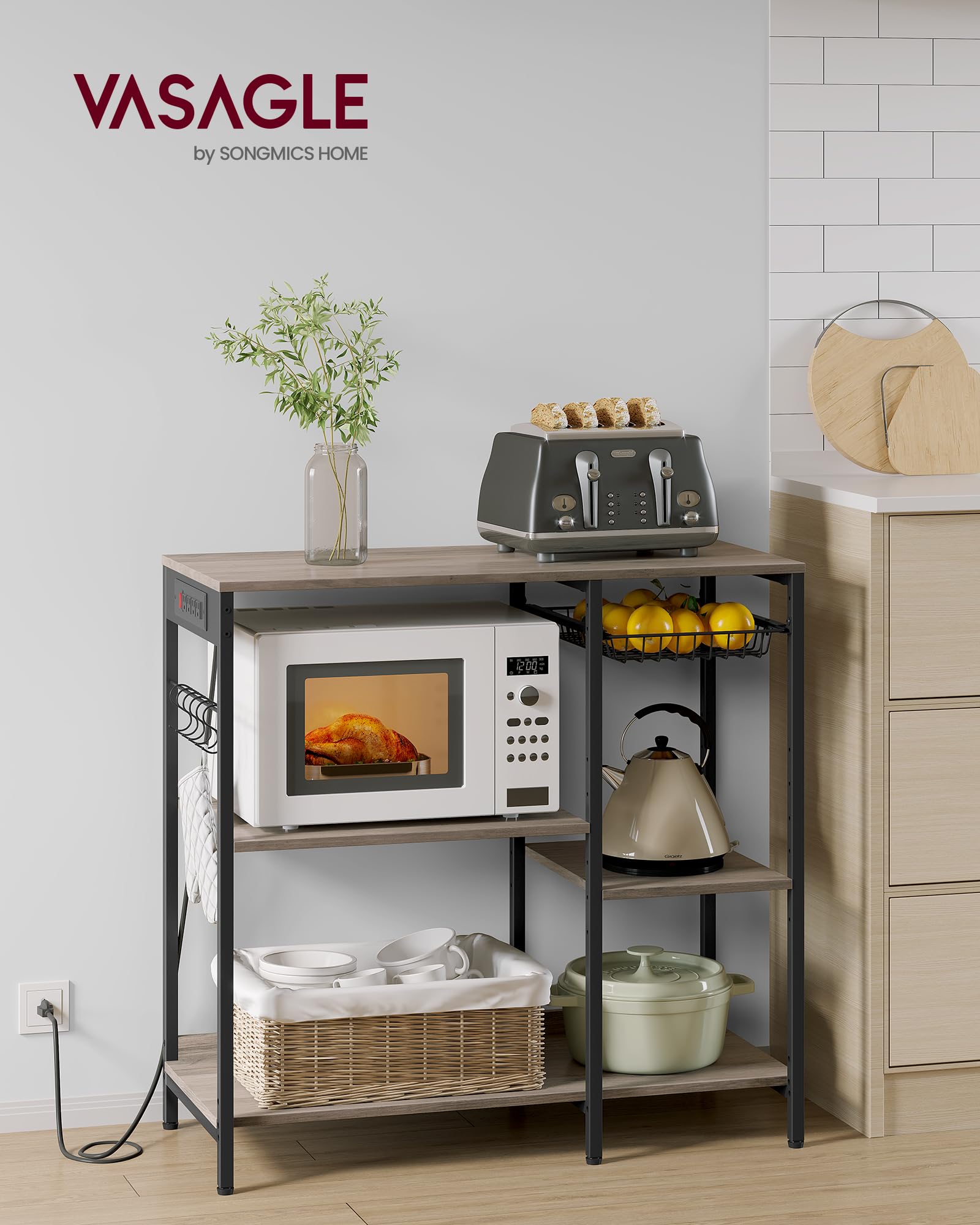VASAGLE Baker's Rack, Coffee Bar Stand with Charging Station, Storage Shelves, Pull-Out Wire Basket, Table for Microwave, Kitchen, Greige UKKS036K02, 15.7 x 35.4 x 35.6 Inches