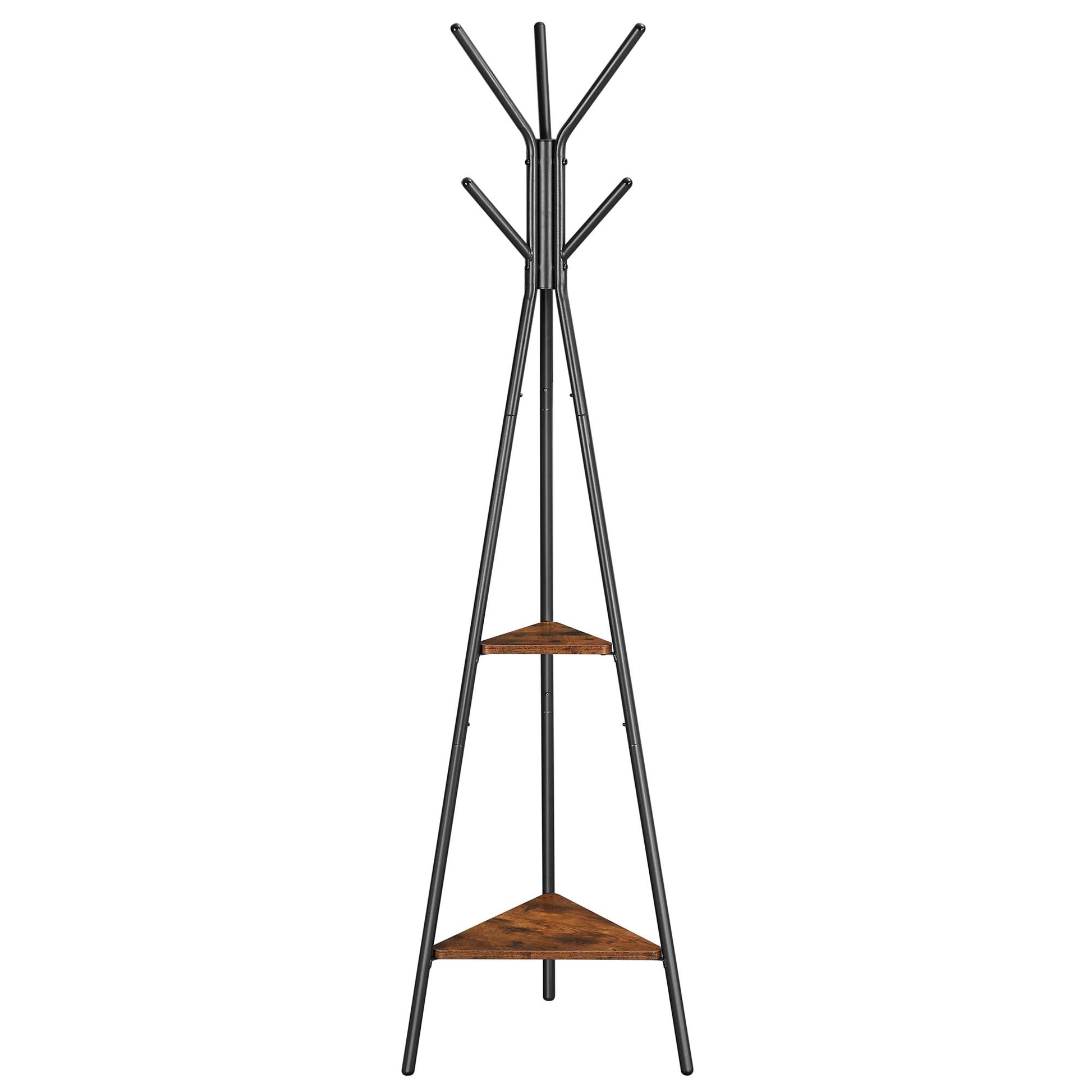 VASAGLE Coat Rack Freestanding, Coat Hanger Stand, Hall Tree with 2 Shelves, for Clothes, Hat, Bag, Industrial Style, Rustic Brown and Black URCR16BX