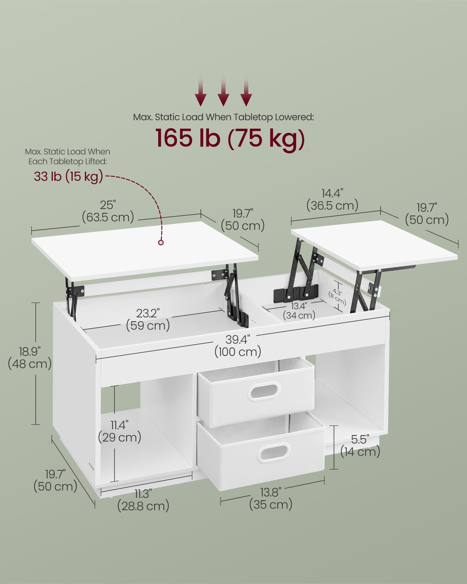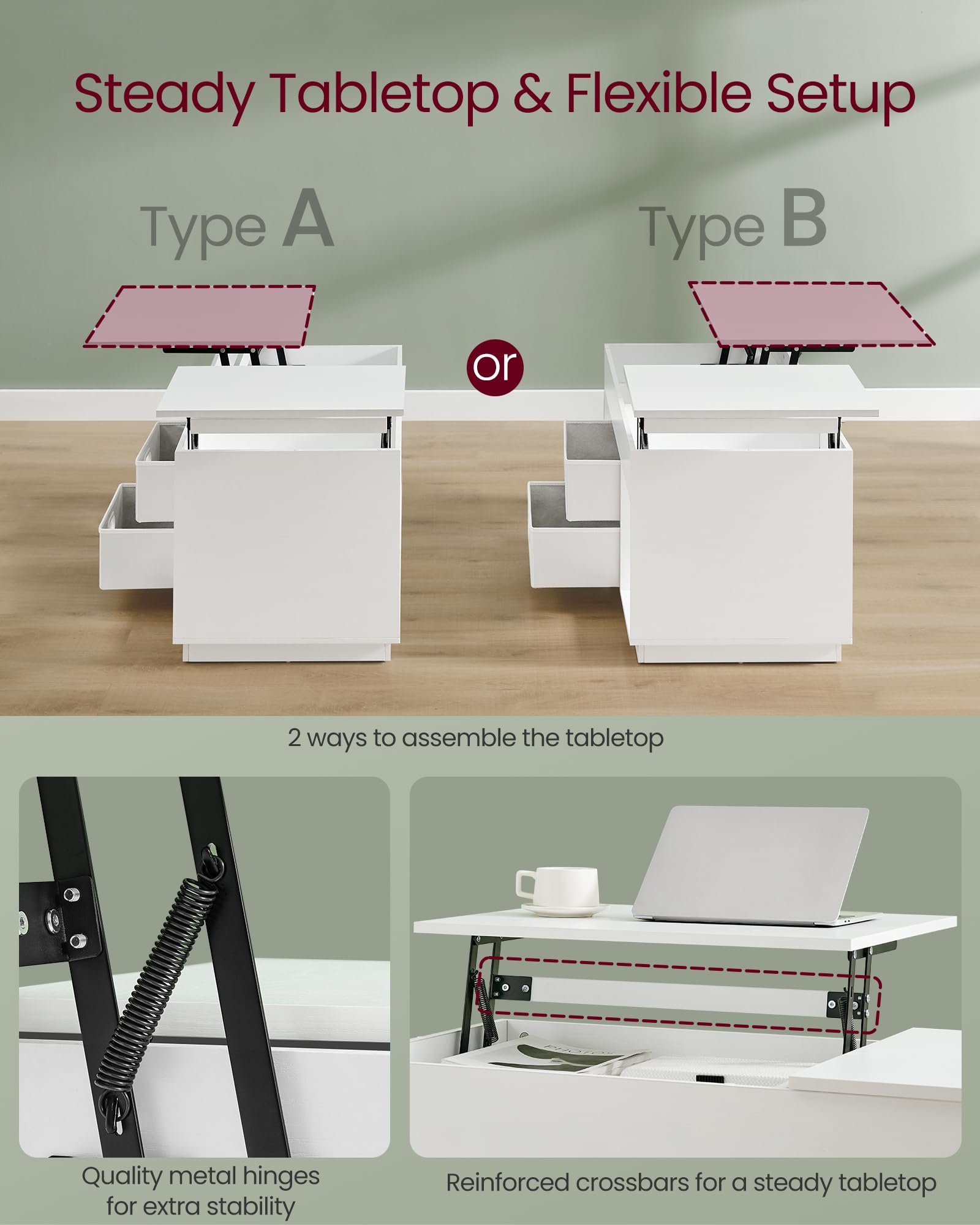 - 【STEADY. SILENT. SAFE】The premium metal hinges and reinforced crossbars of this living room table ensure the tabletop lifts and lowers steadily and quietly, providing stable support and minimizing pinch risks during lowering
