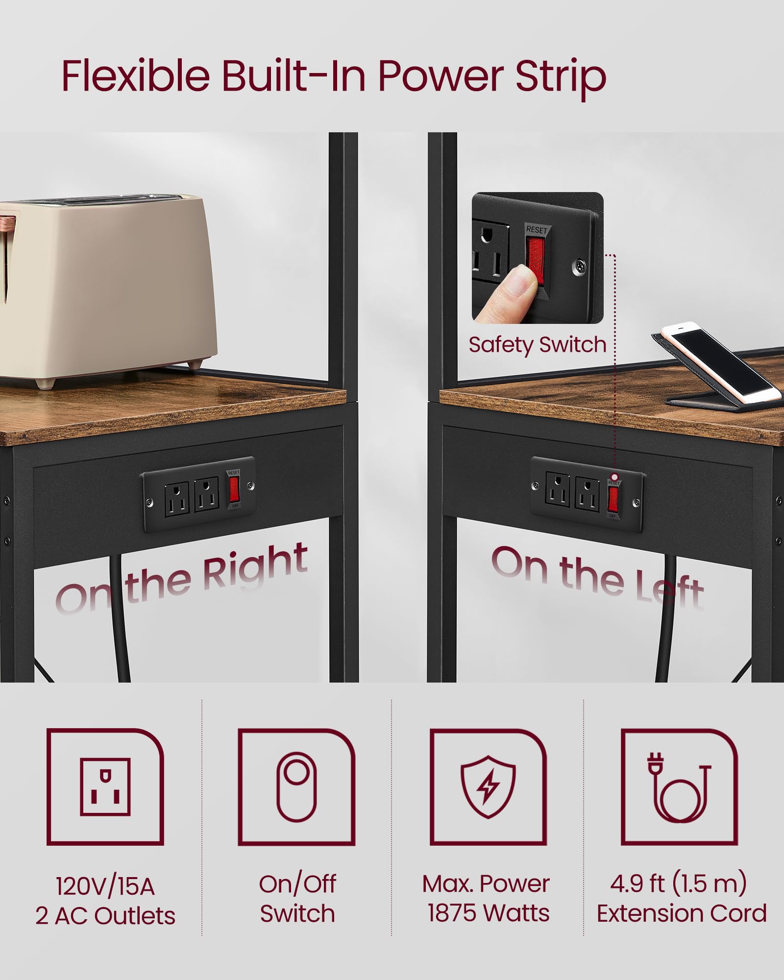 - Convenient & Secure Power Strip: This coffee bar has a built-in power strip with 2 AC outlets to effortlessly power your appliances, plus an on-off switch and overload protection to ensure safe operation