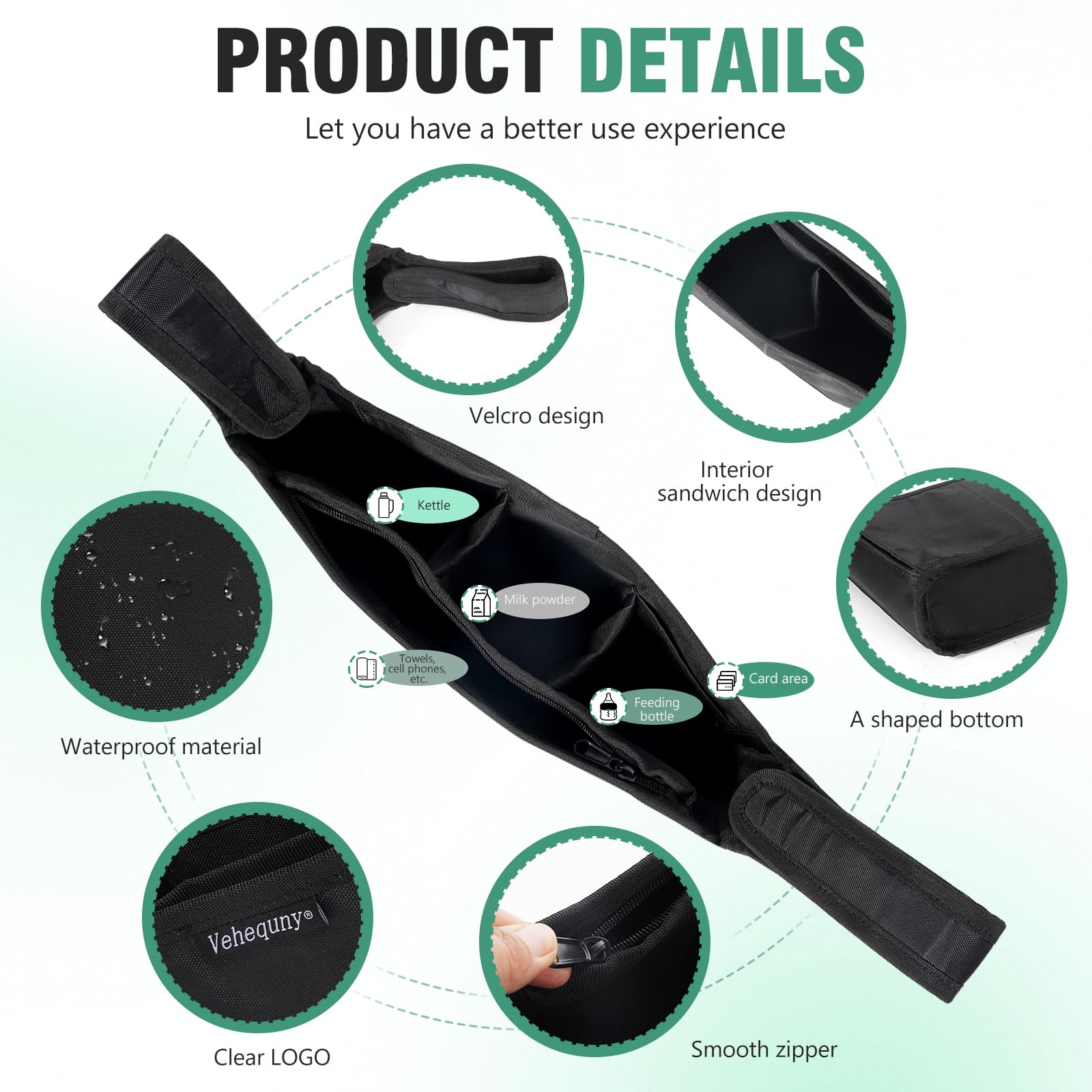 Vehequny Stroller Caddy, Universal Stroller Organizer,600oz Large Storage Stroller Organizer Bag Fits for Uppababy, Baby Jogger, Britax, BOB, Cruz, Minu, G-Series ,Most Strollers