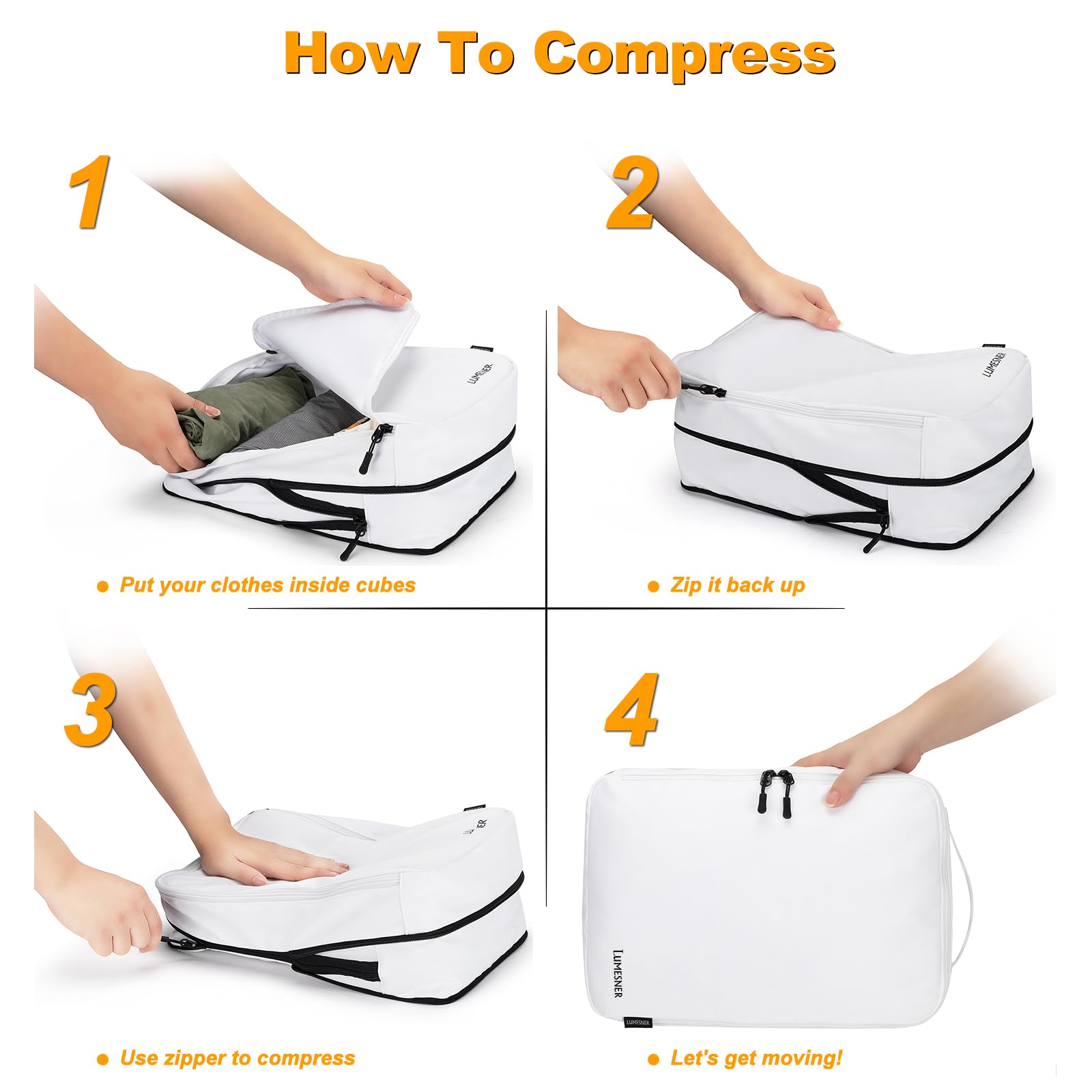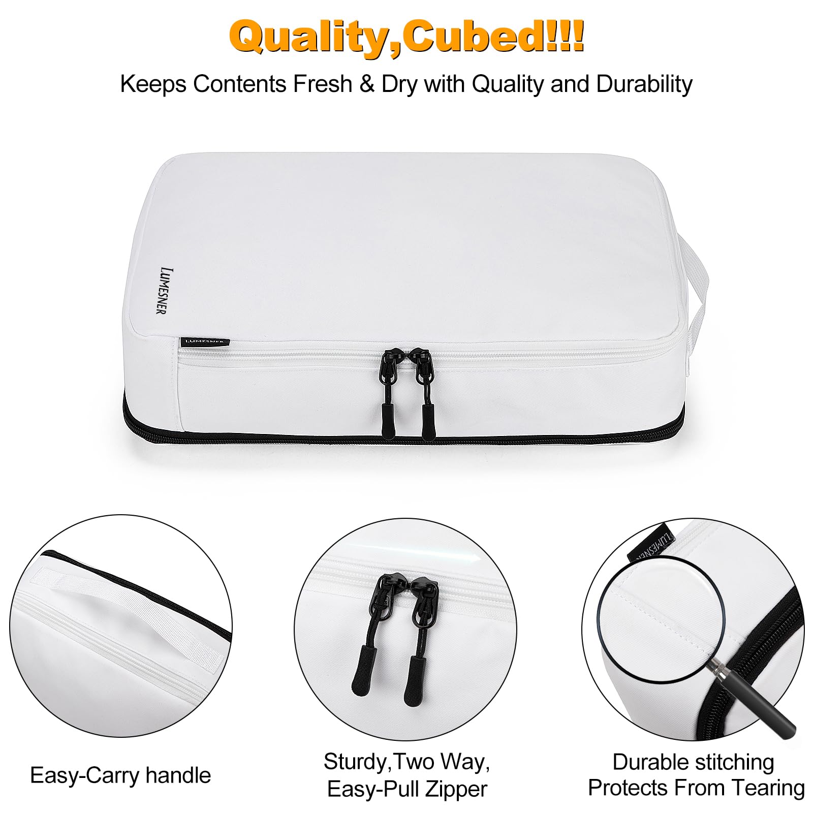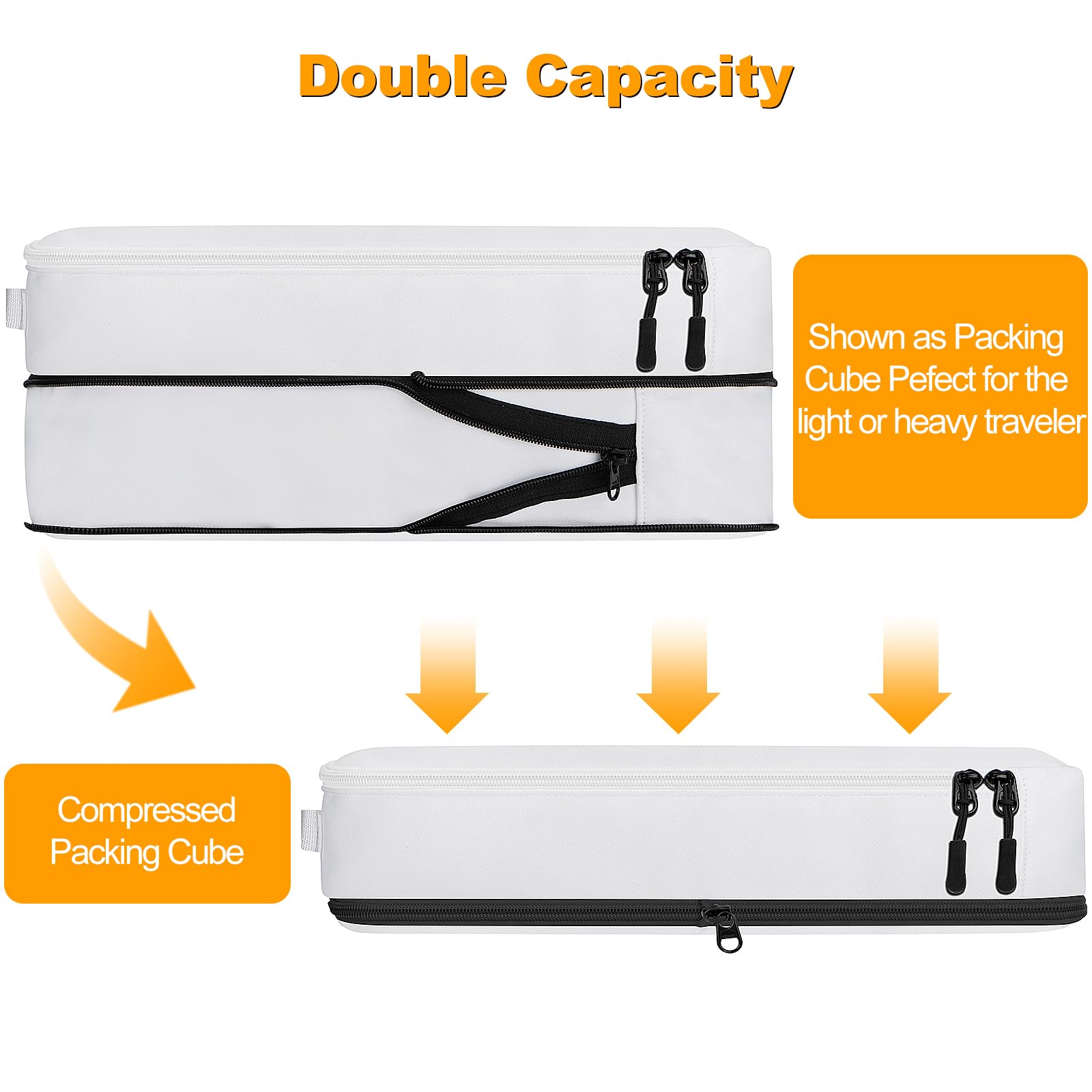 - ✈️Enhanced Durability – Heavy-Duty Zippers & Reinforced Handles:Made with high-density, tear-resistant fabric, these packing cubes feature premium dual zippers for smooth and reliable use. The Compression Packing cubes include reinforced handles, making them easy to carry separately or pack into suitcases, carry-ons, duffels, and backpacks!