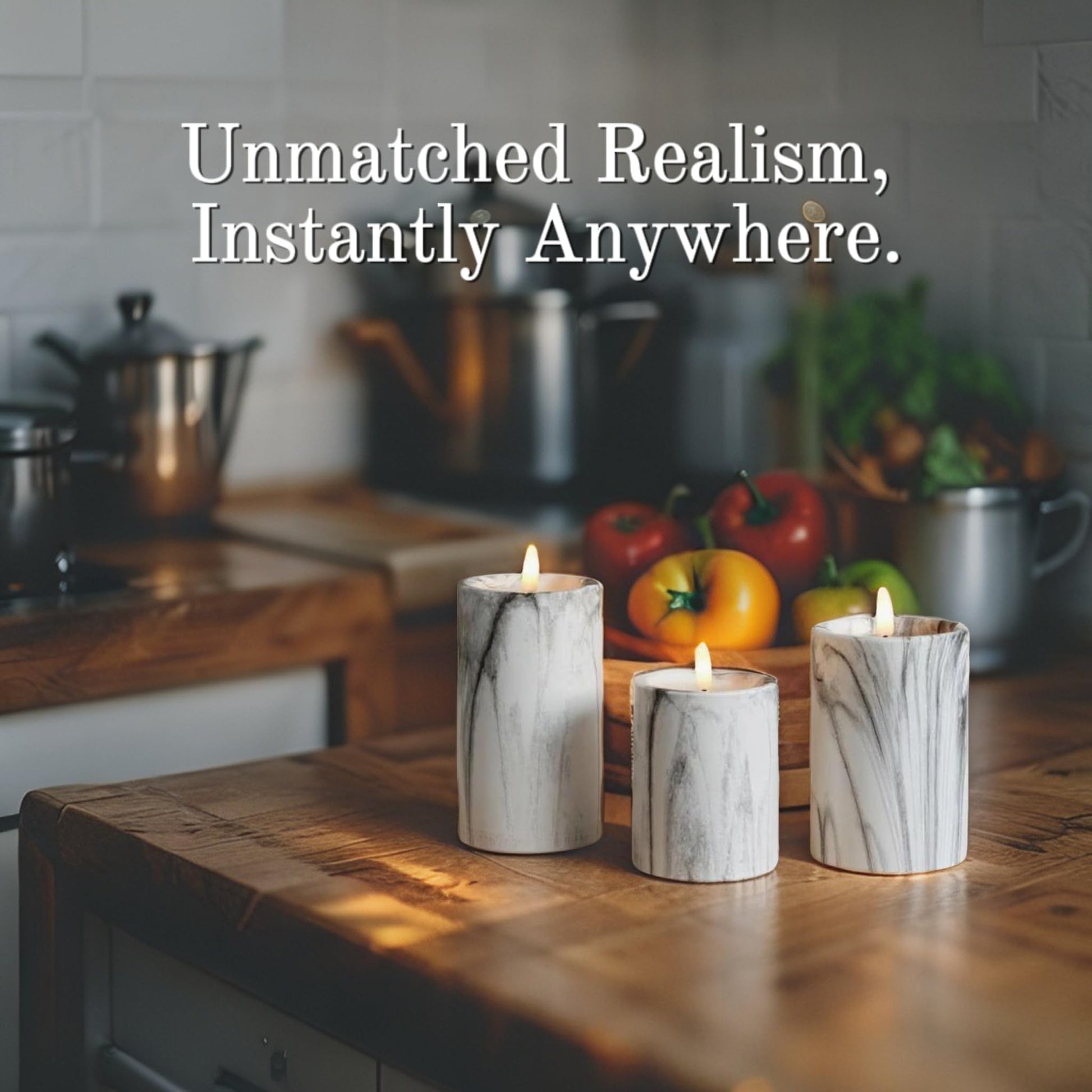 VENTA Flickering Flameless Candles with Remote Control - Led Candles Battery Operated - Battery Operated Candle for Decoration Table, Timer & Dimmer Features, Set - 3Pcs (4",5",6") (Marble)