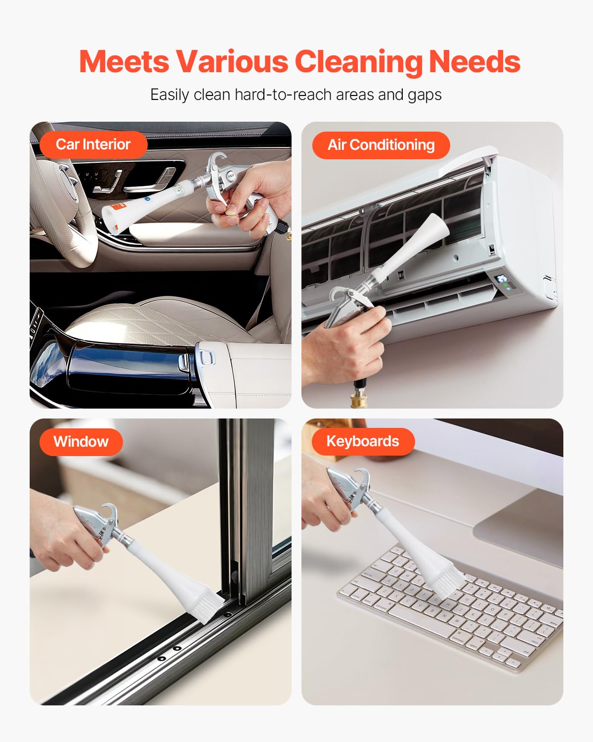 VEVOR Car Cleaning Gun, 6-9.2 Bar High-Pressure Air Blow Gun with 2 Set Nozzles, 360° Rotating Nozzle for Thorough Cleaning, Quickly Blasts Dirt and Dust from Surface, Work with 1/4 NPT Air Compressor