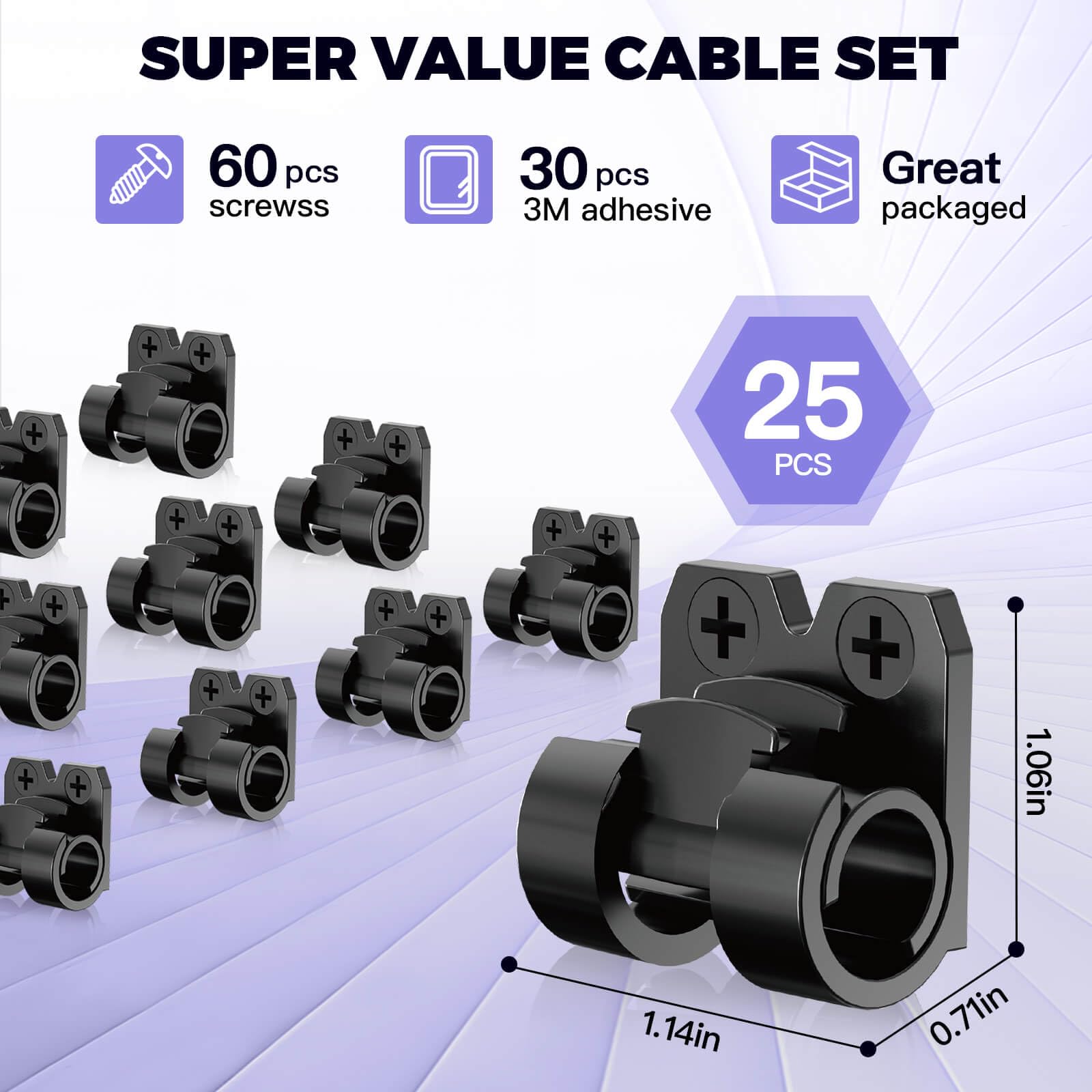 VEXON Hooks for Outdoor String Lights Clips: 25pcs Christmas Light Clips with Waterproof Adhesive for Hanging Balcony Lights - Outside Black String Light Hooks - Decor Garland Hanger - Cable Holders