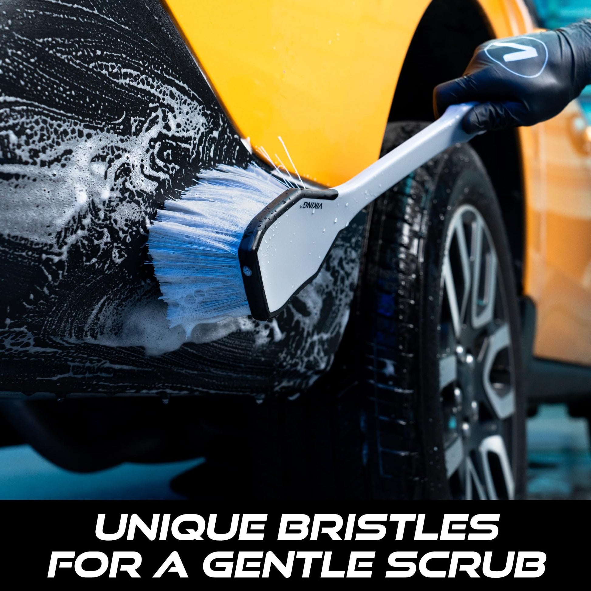 - Car Wash Brush measuring 16.5 inches long with a patented, ergonomic design for cleaning grills, fenders, fender flares, bumpers, and wheel wells