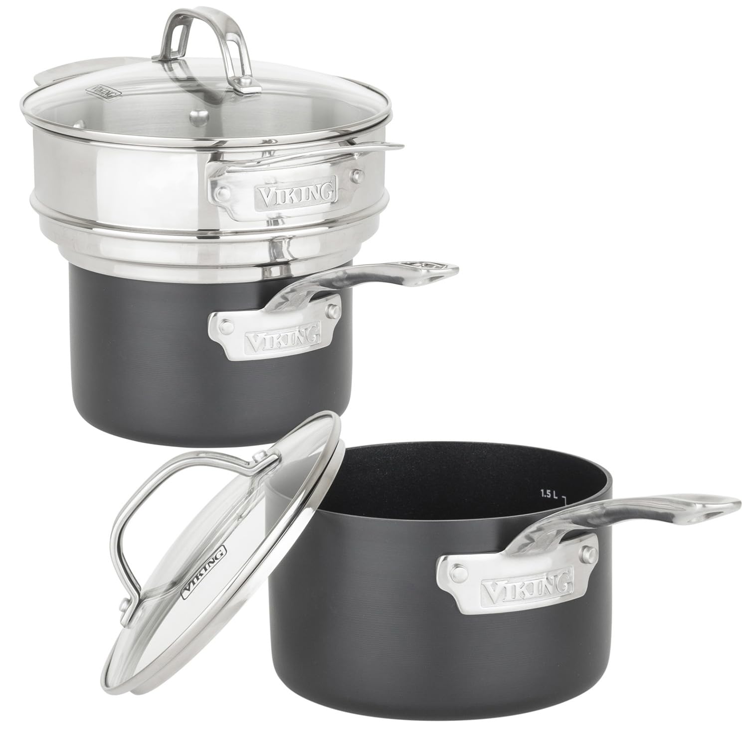 - GREAT GIFT FOR COOKING ENTHUSIASTS: Our hard anodized cookware sets make for excellent gifts for the chef in your life. Viking offers a large assortment of cookware, baking supplies, utensils, and other kitchen accessories. Whether you are looking for cast iron pieces, non stick pans, or high quality cookware, Viking has something for both novice and professional chefs to fall in love with. Cookware sets are backed by a limited lifetime warranty