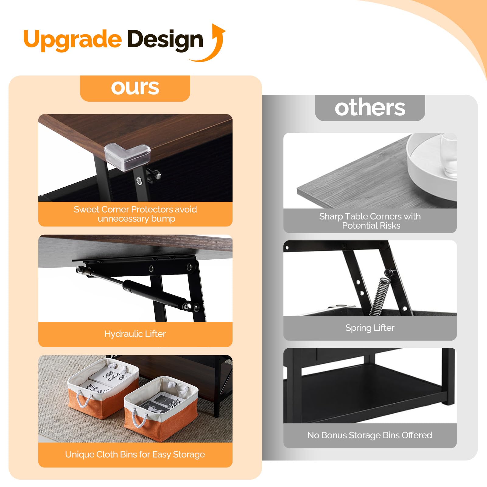 - 【Space Efficiency】One hidden compartment with a depth of 5', two high-quality cloth storage bins for more storage. Tabletop instantly converts into a dining table for a movie day night or a home workstation.