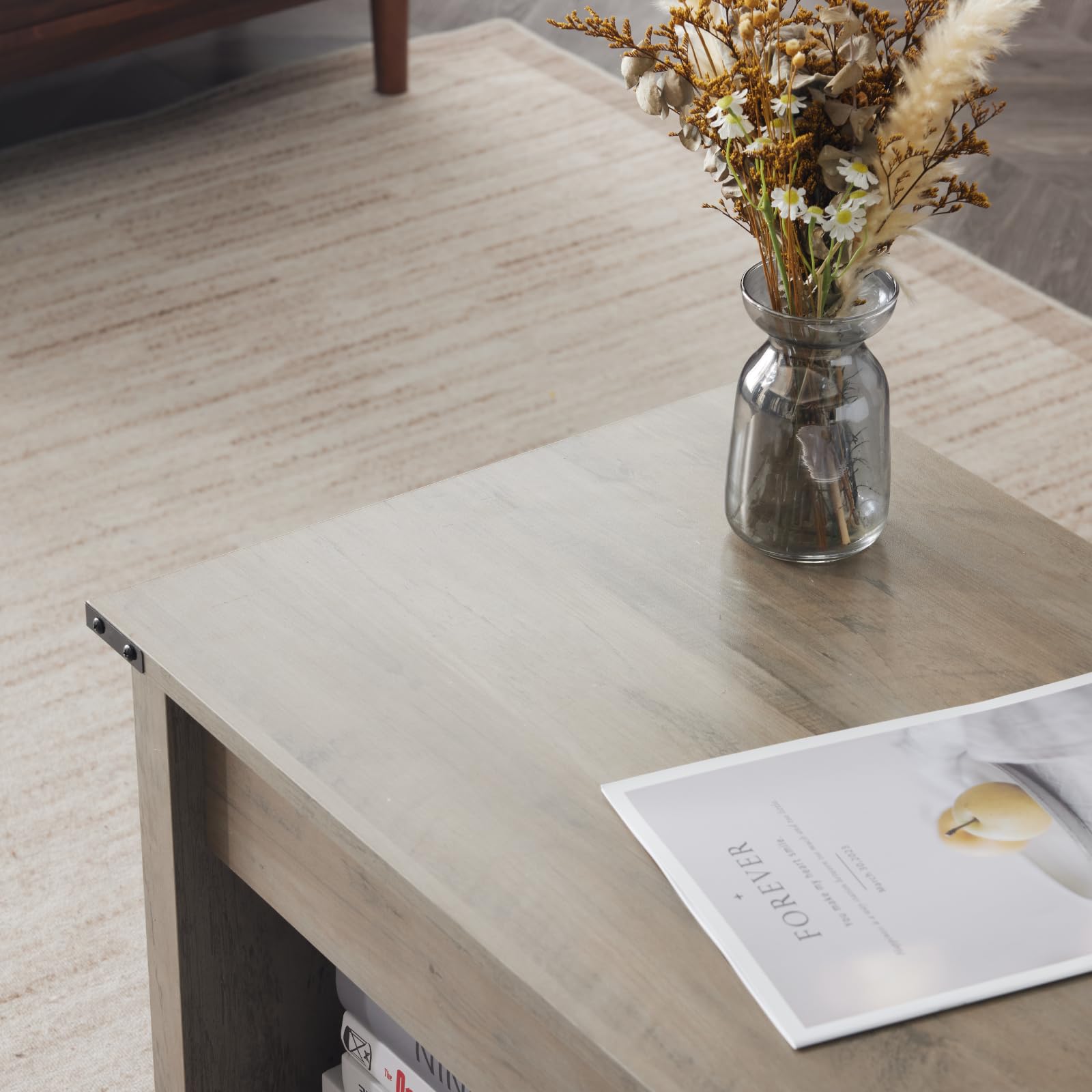 VINGLI Farmhouse Lift Top Coffee Table, Rustic Grey with Storage Shelf/Hidden Compartment, Mesa De Centro para Sala