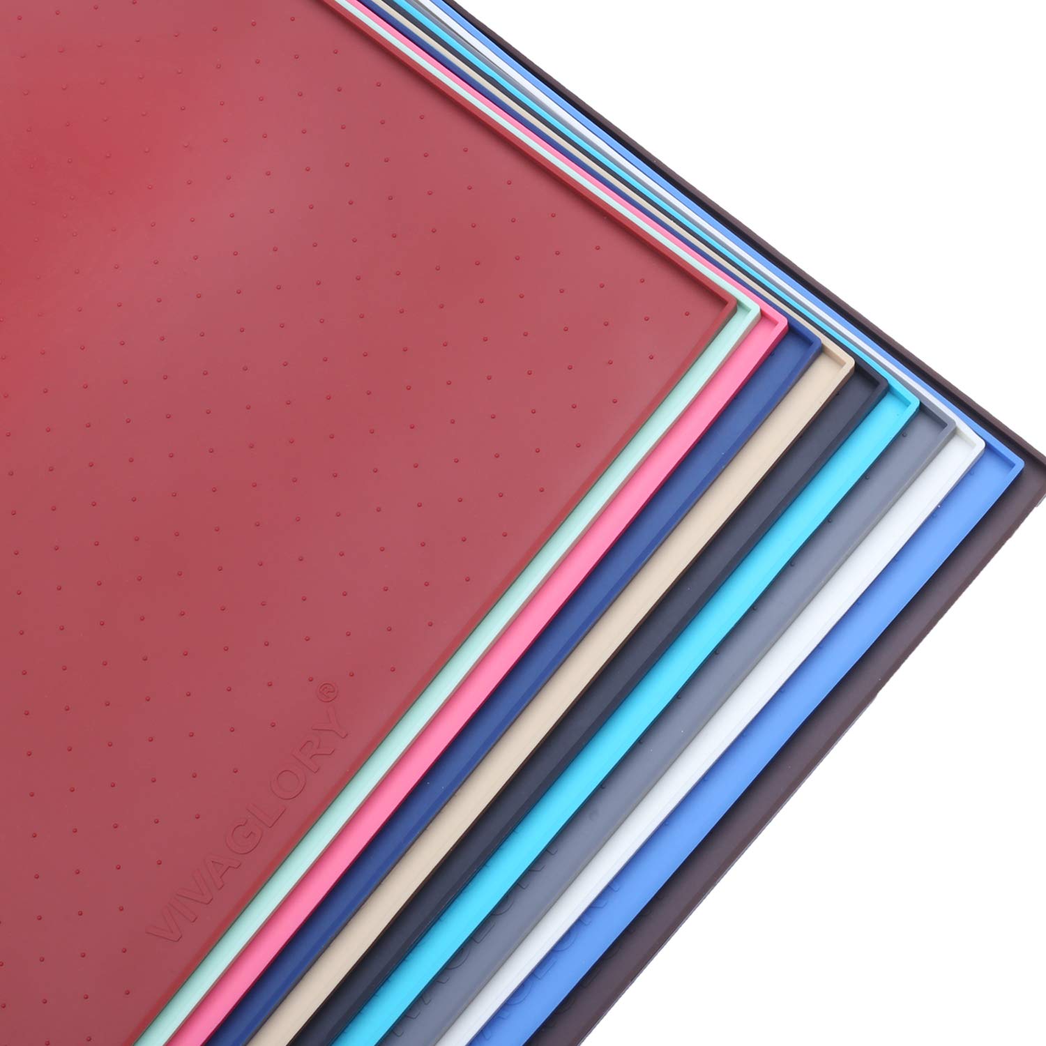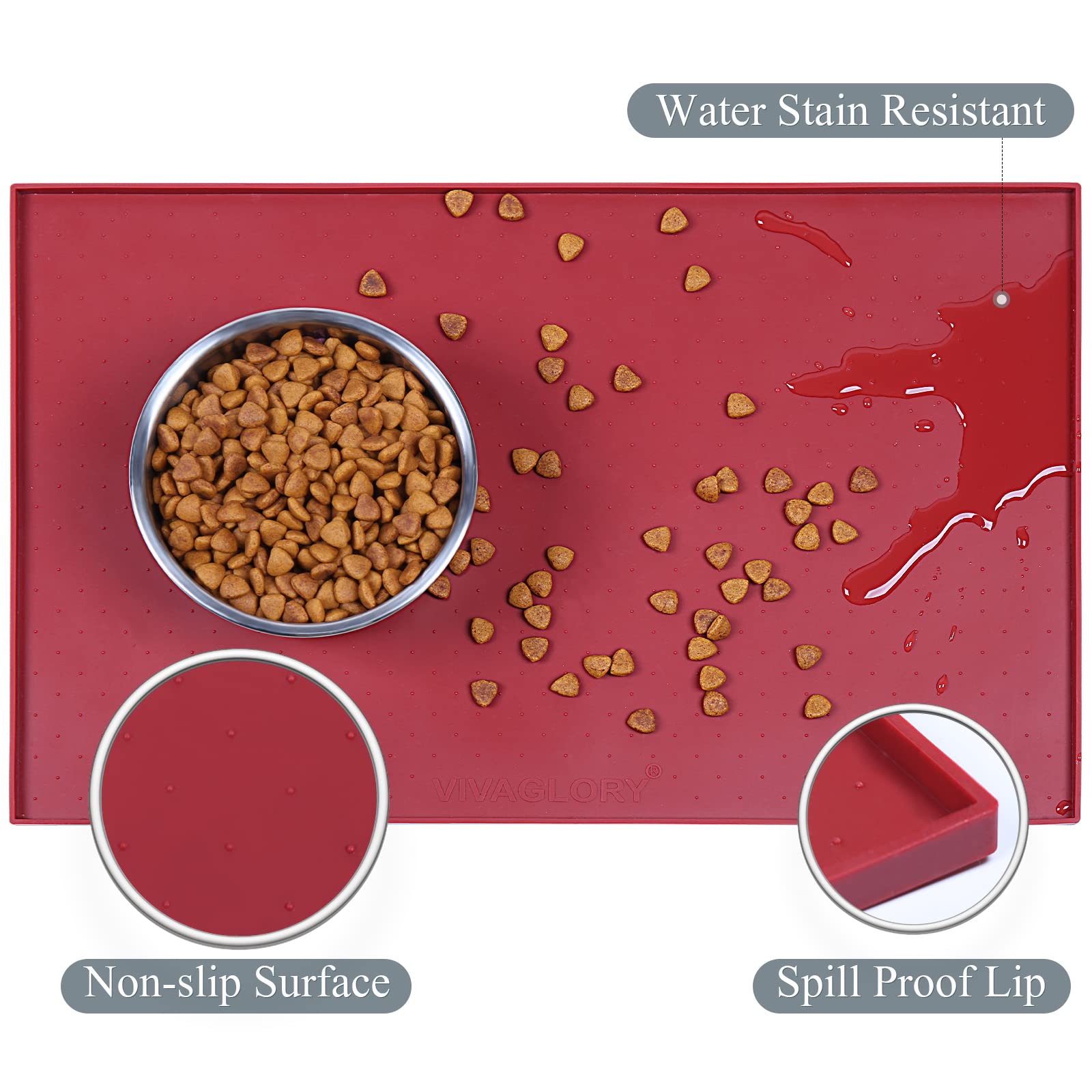 VIVAGLORY Dog Food Mat, Cat Dog Feeding Mat, Waterproof Non-Slip Food Grade Silicone Mat Placemat with Raised Edge, Anti-Messy Pet Bowl Mat for Food and Water, Burgundy, S(19"x12")