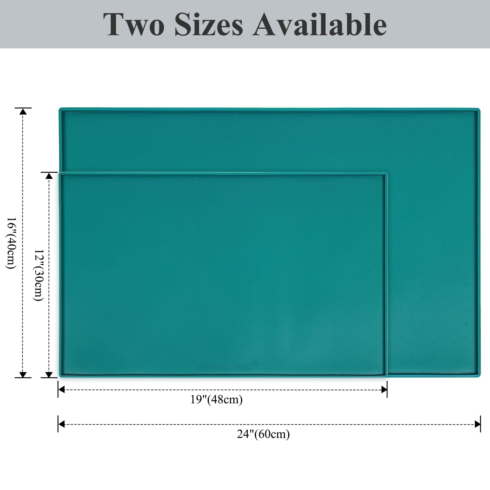 VIVAGLORY Dog Food Mat, Cat Dog Feeding Mat, Waterproof Non-Slip Food Grade Silicone Mat Placemat with Raised Edge, Anti-Messy Pet Bowl Mat for Food and Water, Deep Green, S(19"x12")