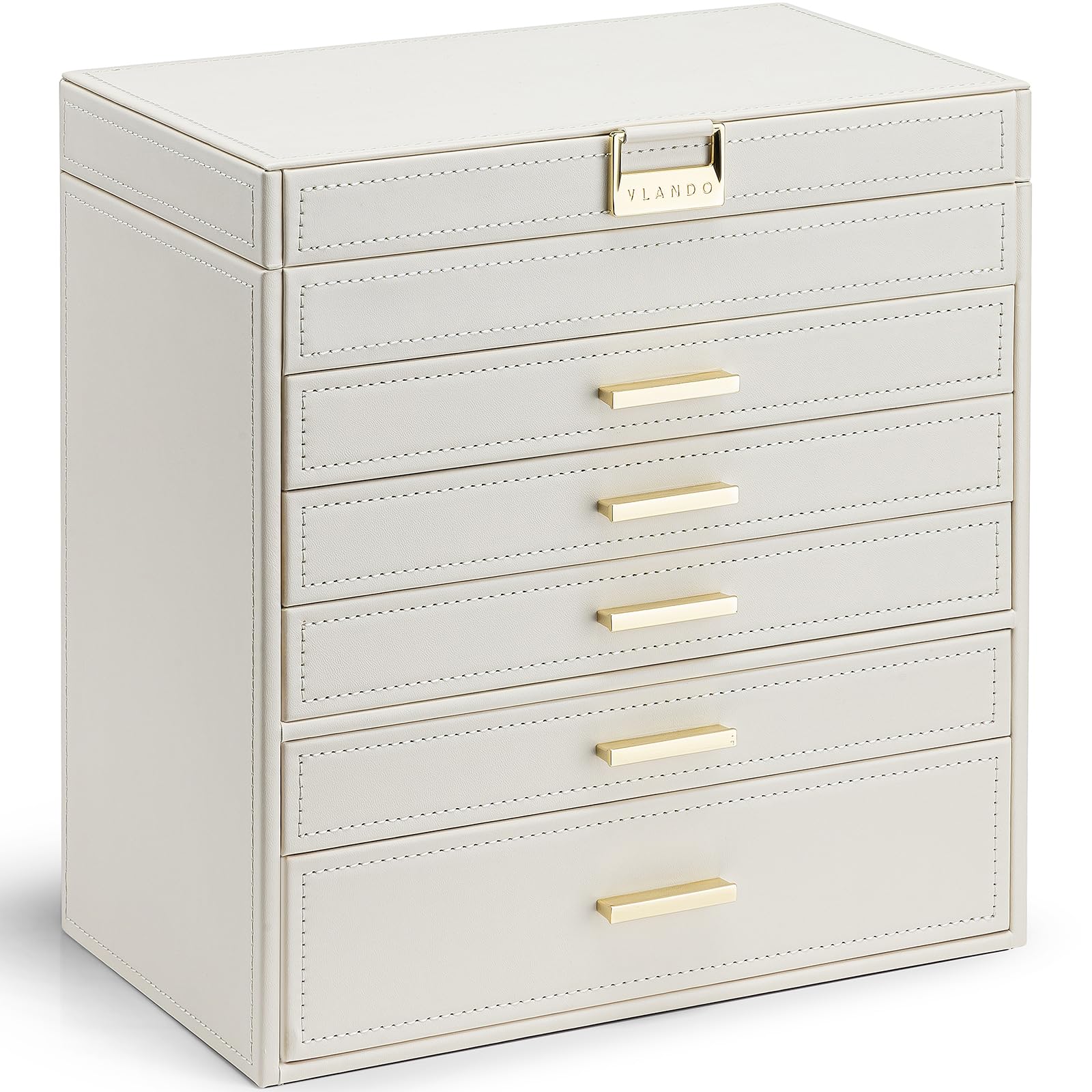Vlando 6 Layer Large Jewelry Box - Jewelry Holder Organizer, Jewelry Box Organizer for Drawer Necklace Ring Bracelet and Watch, Birthday Gift for Loved Ones - Beige