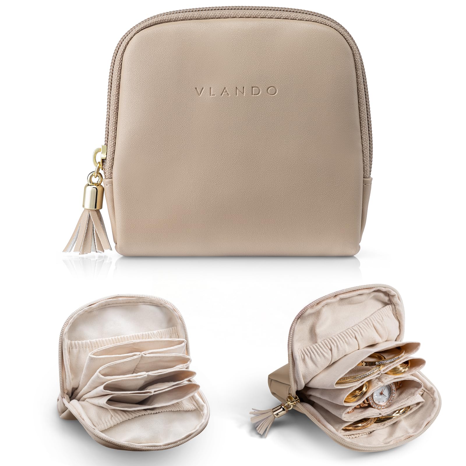 Vlando Small Jewelry Travel Case,Jewelry Pouch Bags with Zipper,Velvet Jewelry Organizer Storage Bag for Bracelet Rings Earring Travel Essentials-Toffee