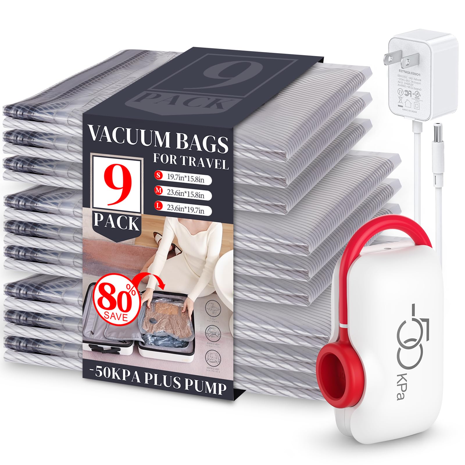 VMstr 12 Pack Vacuum Storage Bags for Travel, Carry-on Size for Luggage Compression Packing, Space Saver with High Pressure Electric Pump(D/C Power)