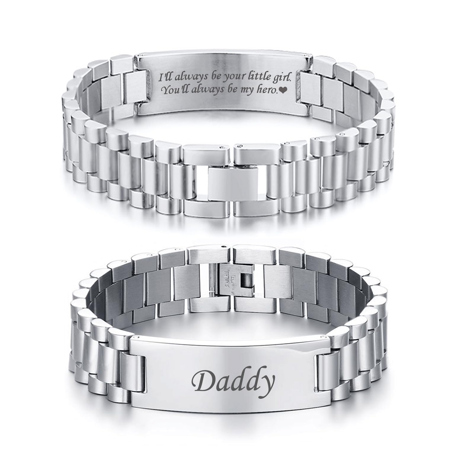 VNOX Masculine Watch Band Stainless Steel Link Bracelet Personalized Jewelry Gift for Men DAD Father Husband Boyfriend