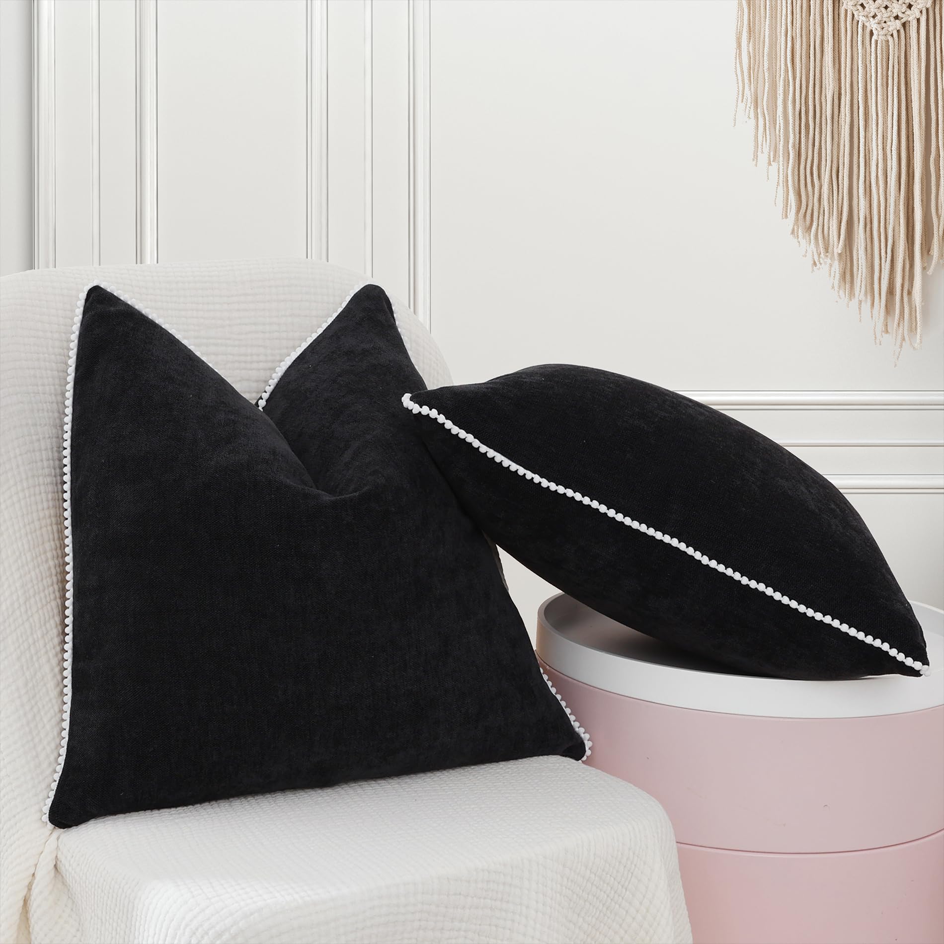 VOILYBIRD Black Boho Pillow Covers 20x20 Inch, Decorative Throw Pillow Covers for Sofa, Couch Pillow Covers for Living Room, Set of 2