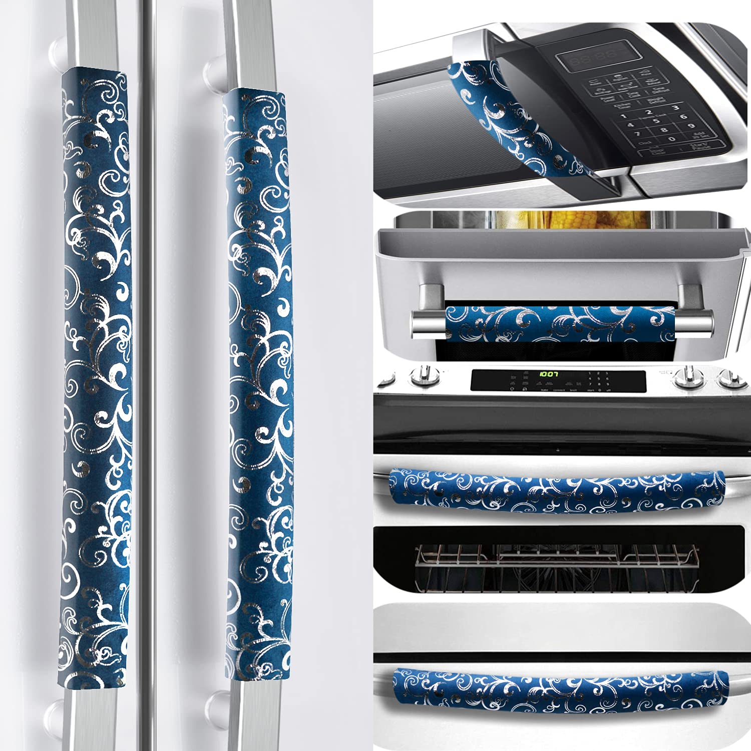 Volecy Refrigerator Door Handle Covers, Set of 6 Velvet Appliance Handle Covers Keep Appliance Clean for Fridge Microwave Stove Bathroom Catch Stains Dust Fingerprint Prevent Spread (Printed Blue)