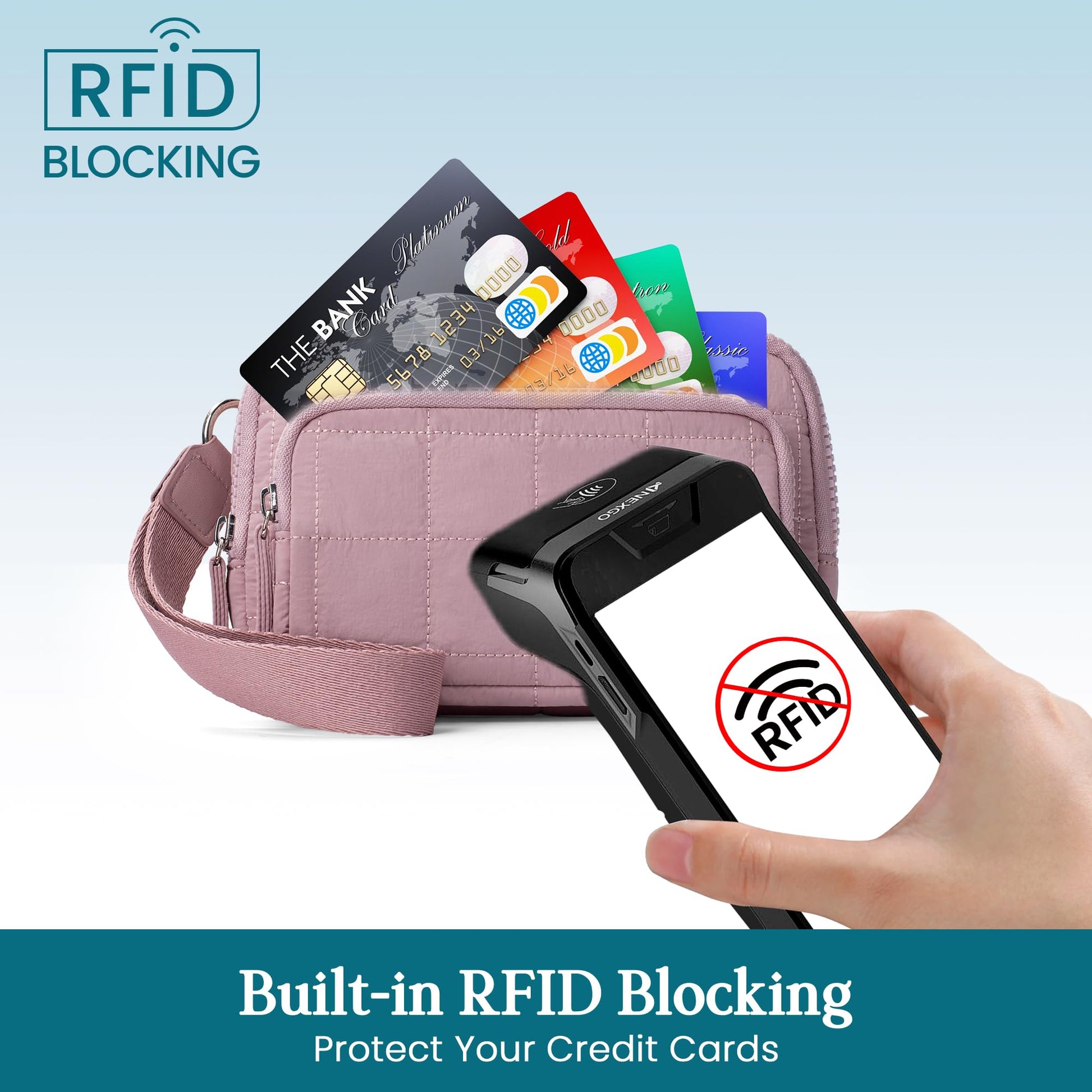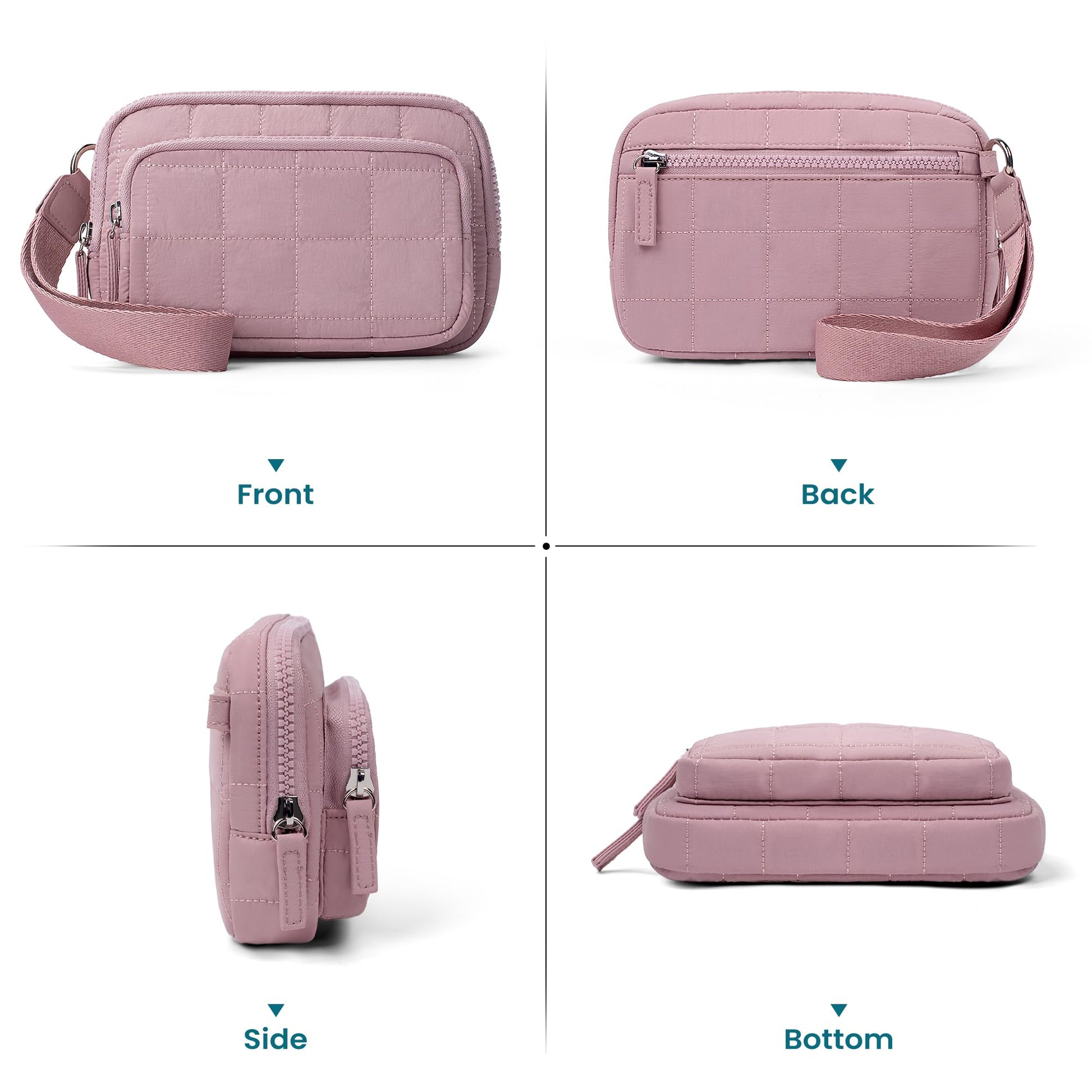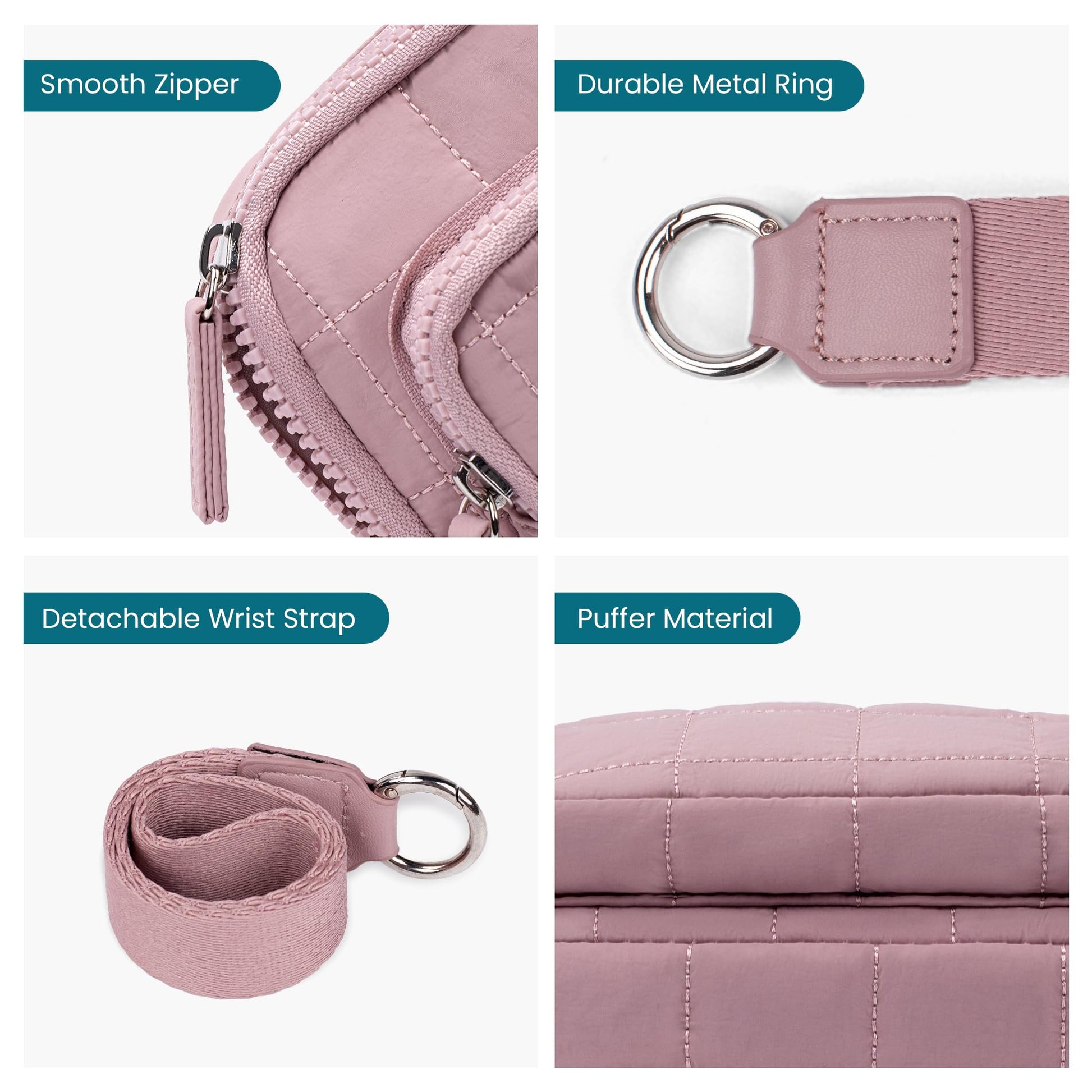 VONAL Wristlet Wallets for Women, Quilted Nylon Wallet Purse with 3 Zipper, Credit Card Holder with RFID Blocking Cell Phone Organizer, Puffer Womens Wristlet, Pink