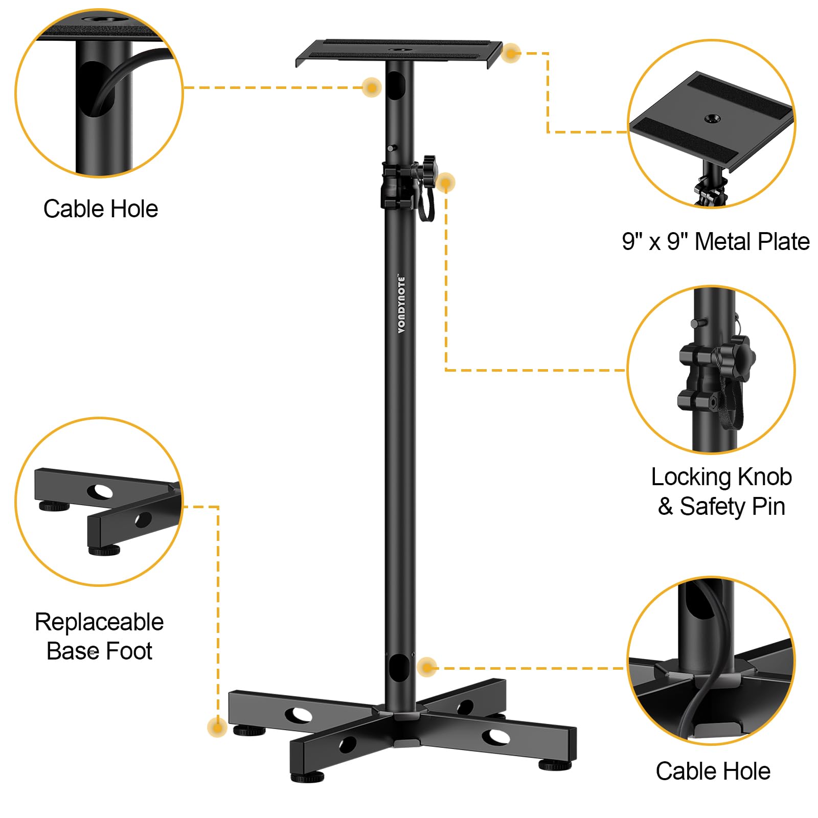 - Cable Management: This studio monitor stand has a built-in 1.38 'H x 0.98 'W wire hole, so you can run your cables through the wire hole into this speaker stand, easily hiding cluttered cables and providing a clean look to your house.