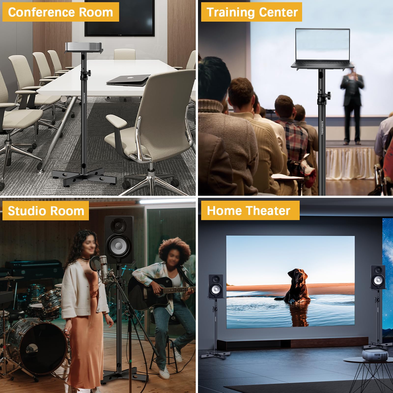 - Square Platform: 9' x 9' square platform for speakers with 2mm EVA anti-skid pad. You can place your studio monitor, laptop, CD player or projector. Load capacity per stand is 88 lbs(40 kgs).