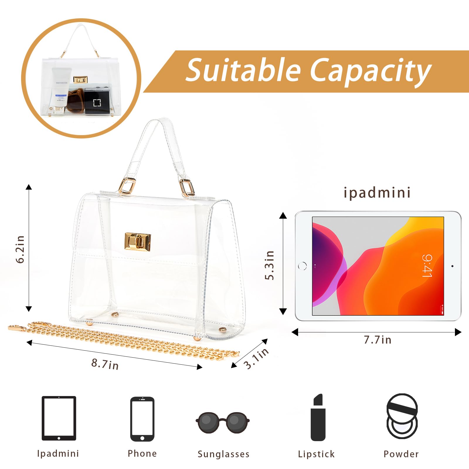 - 【Practical wearing methods】: Detachable strap, Can be worn on one shoulder, across the back, or by hand. As a Clear corssbody bag, or Clear purse for women.