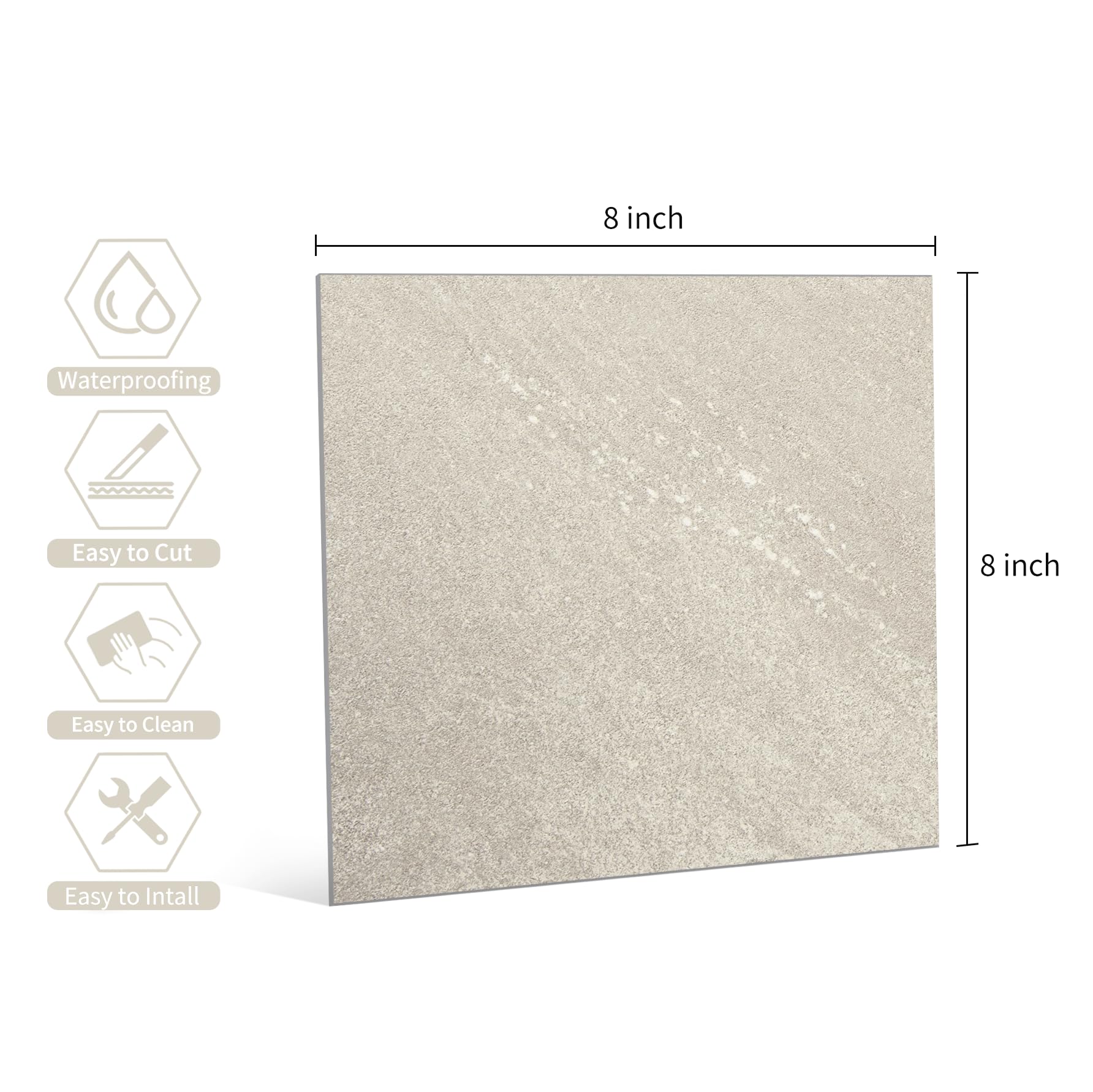- [Material] - Realistic stone grain texture appearance of vintage farmhouse style. The floor tiles are made of stone composite material, do not fade or deform, waterproof, oil resistant and heat resistant,the surface is non-slip and stain-resistant, and easy to clean with a simple wipe. Ours peel and stick flooring tiles are much thicker,rigid and Strong adhesive,It is a totally rental friendly products