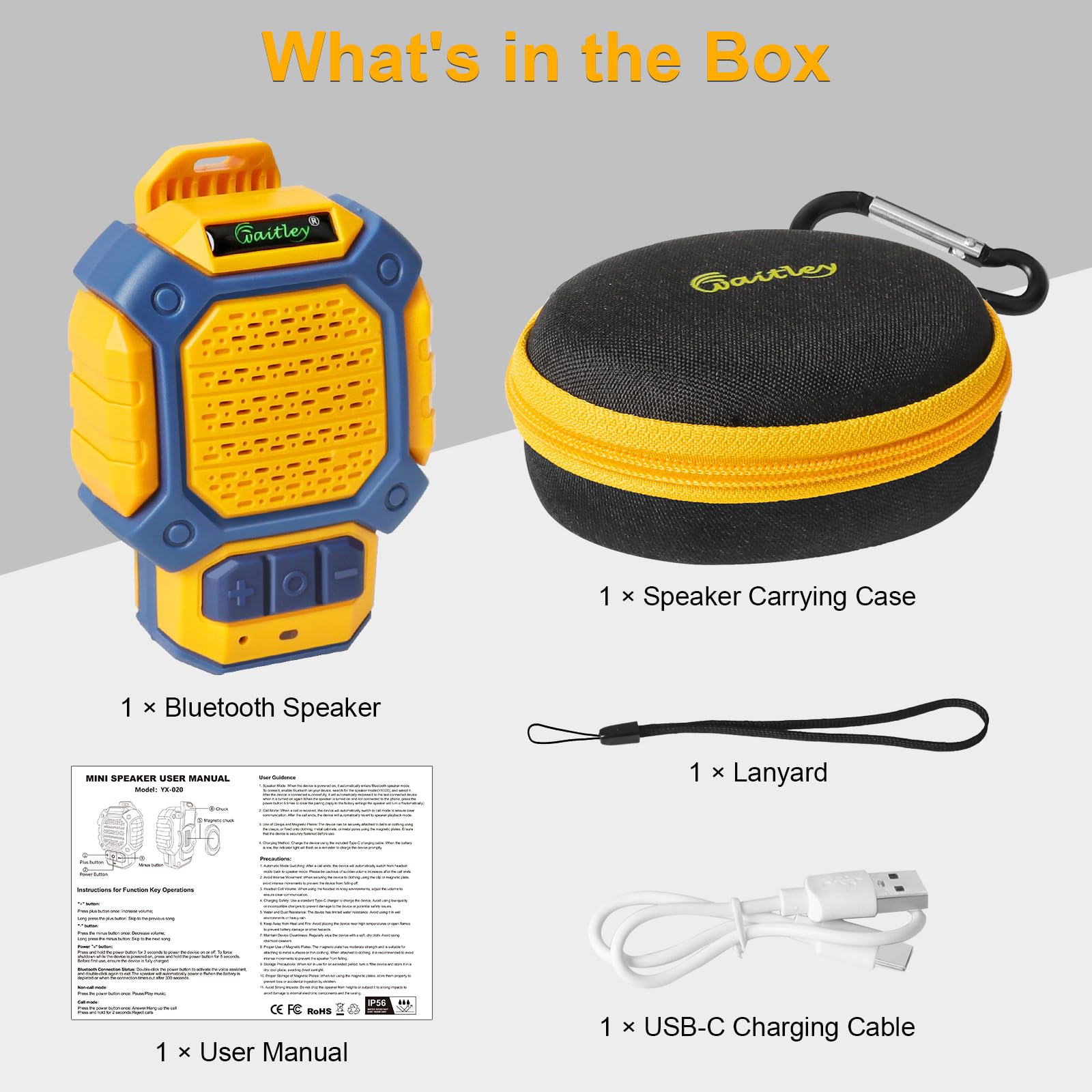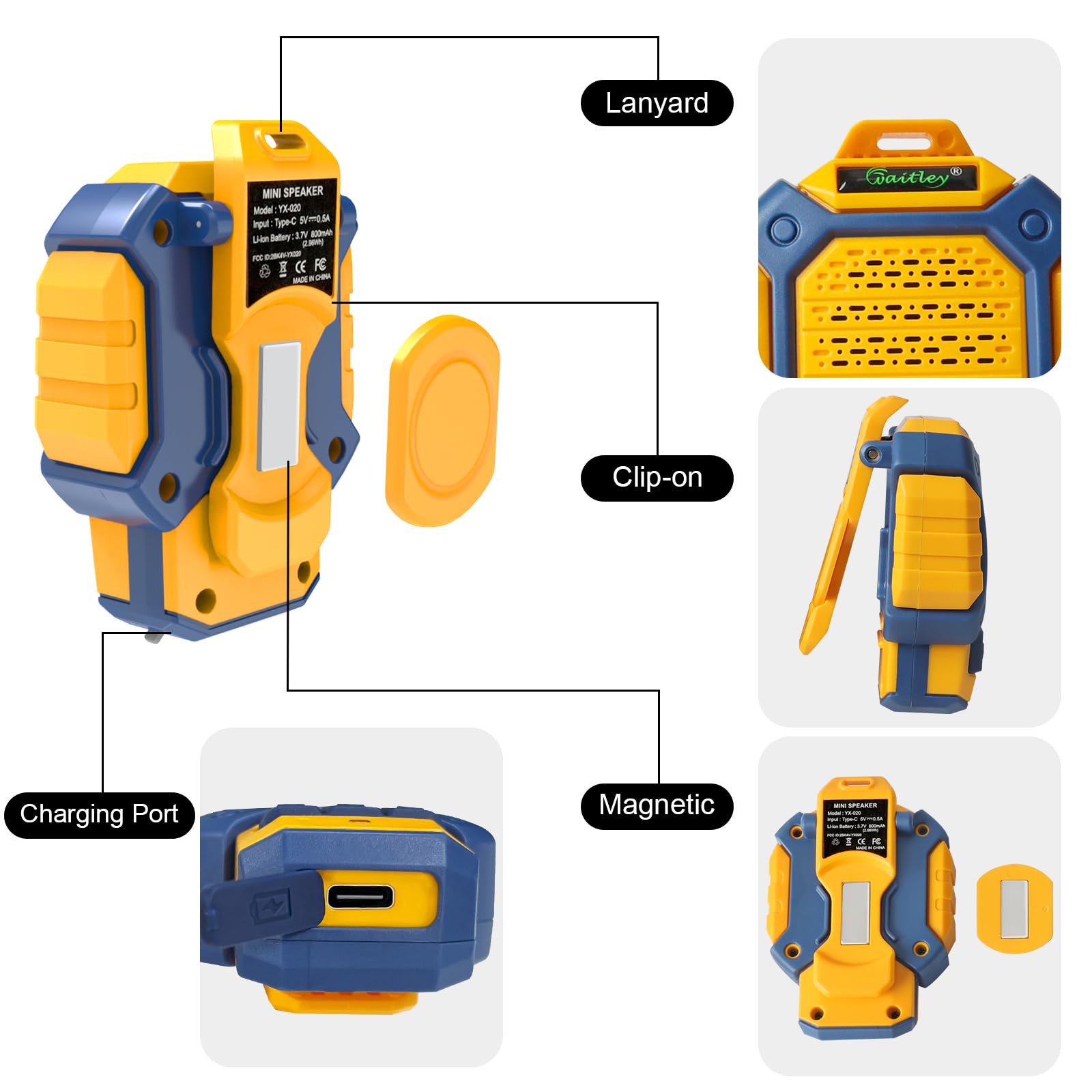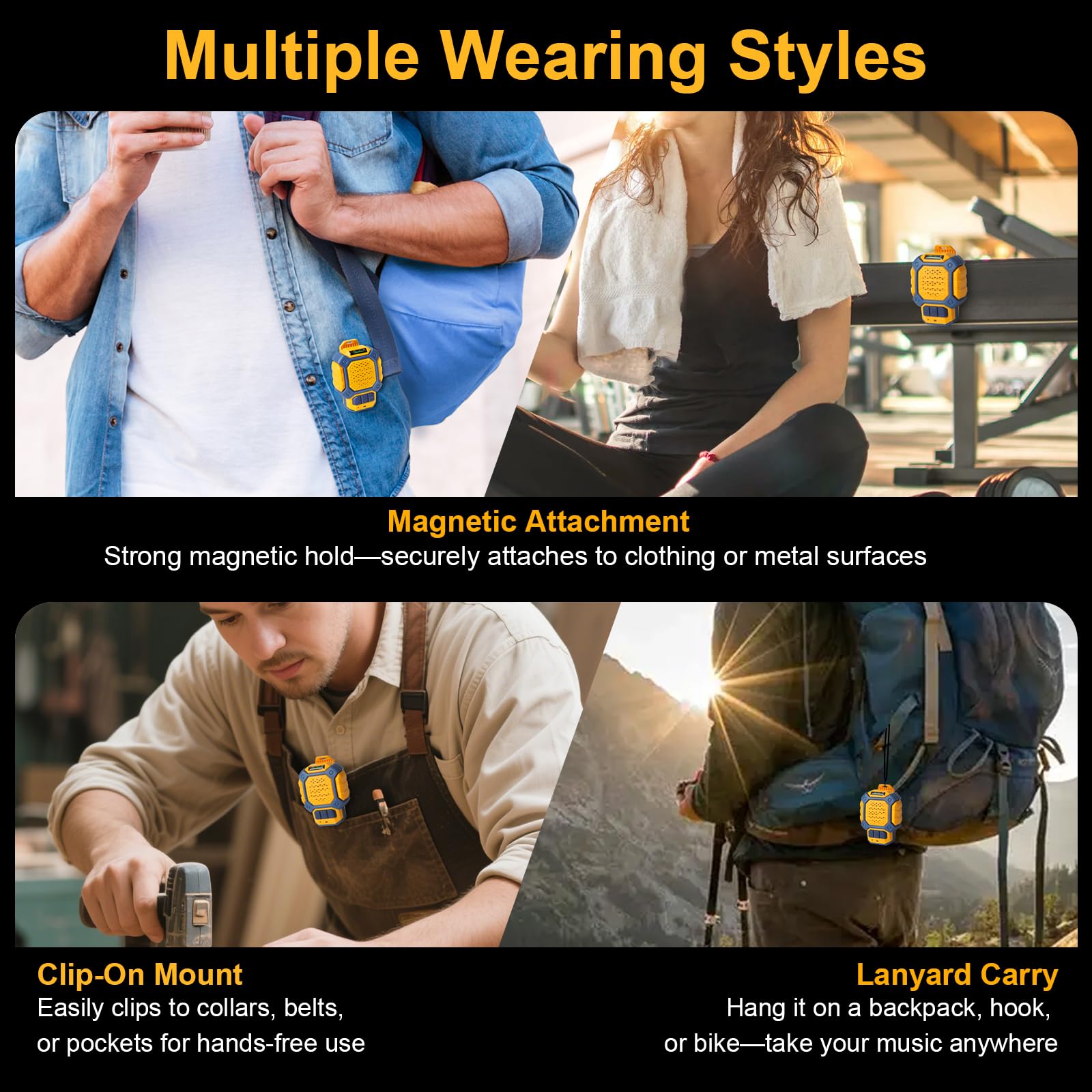 waitley Mini Wearable Bluetooth Speaker - Magnetic Clip, Clip-On & Lanyard 3-in-1, IP56 Waterproof, 12H Playtime, Built-in Mic for Outdoor, Camping, Running, Cycling, Worksite, Jobsite