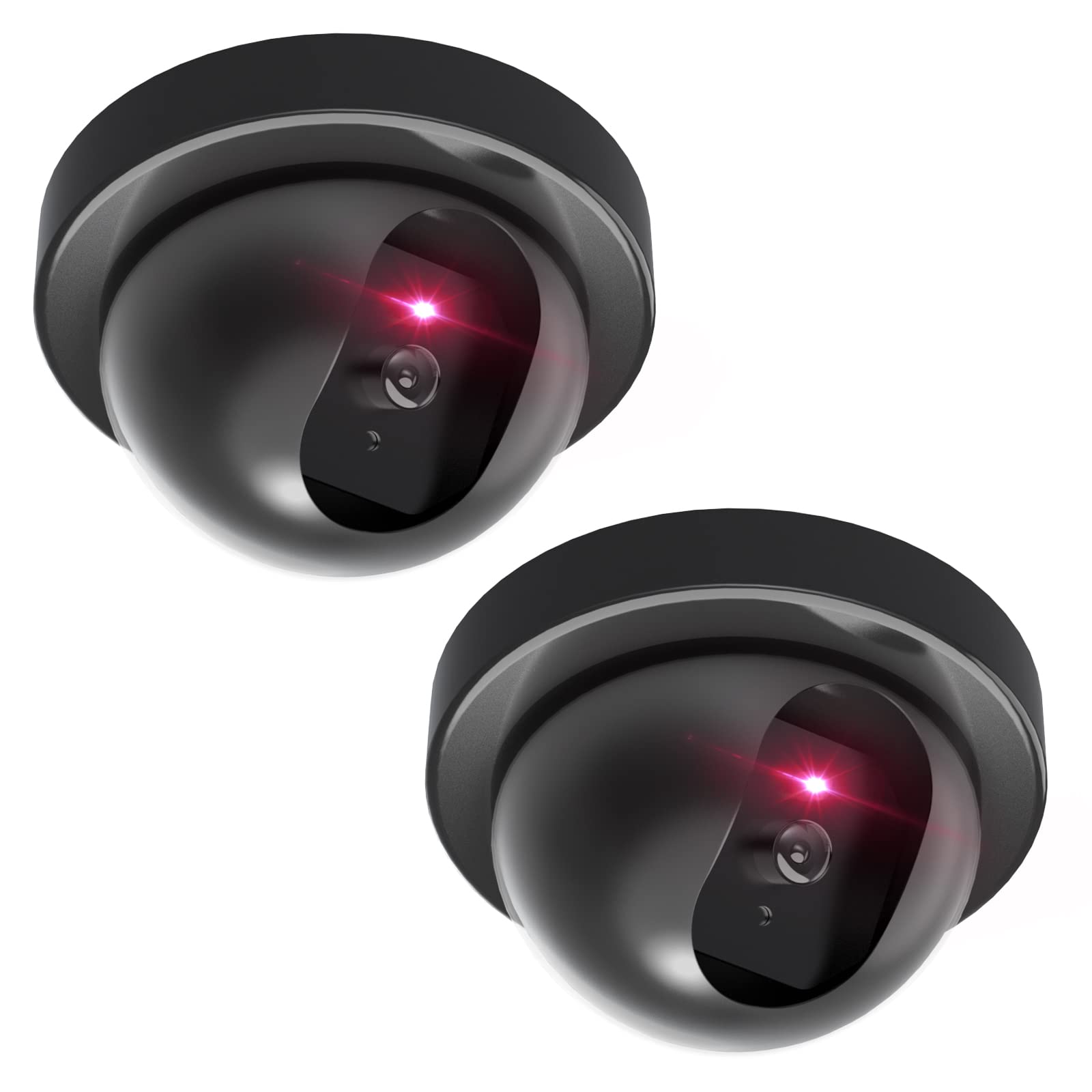 WALI Dummy Fake Security CCTV Dome Camera with Flashing Red LED Light with Security Alert Sticker Decals (SD-2), 2 Packs, Black