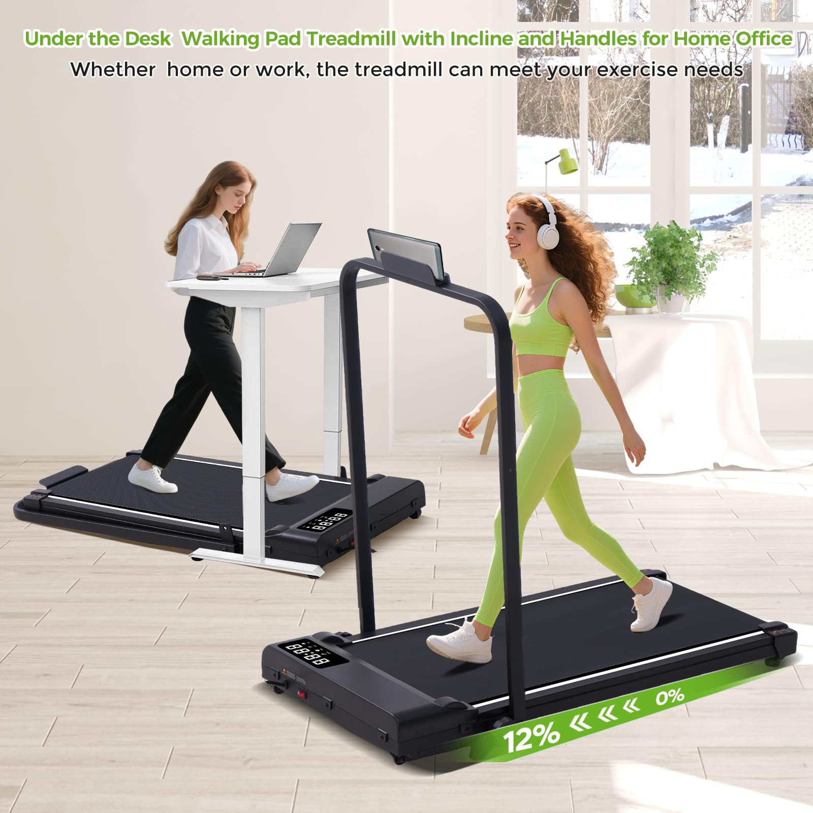 Walking Pad Treadmill with Incline & Handle Bar, 3.0HP Foldable Folding Treadmills for Home Small, Small Portable Treadmill with Handles, Walking pad with Incline and Handle bar, 320LB Capacity