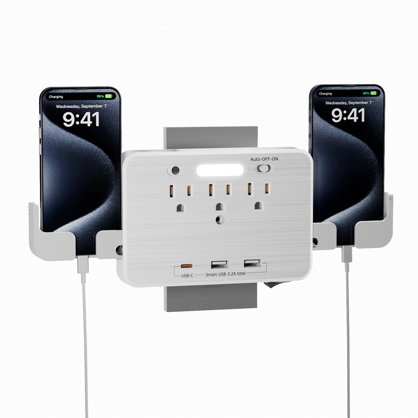 Wall Charger, Surge Protector, 3wall outlet extender USB Charging Ports (1USB C),1875W/15A,Mobile phone holder whit contraction function,Power Stripmulti plug wall outlet Spaced for Home Travel Office