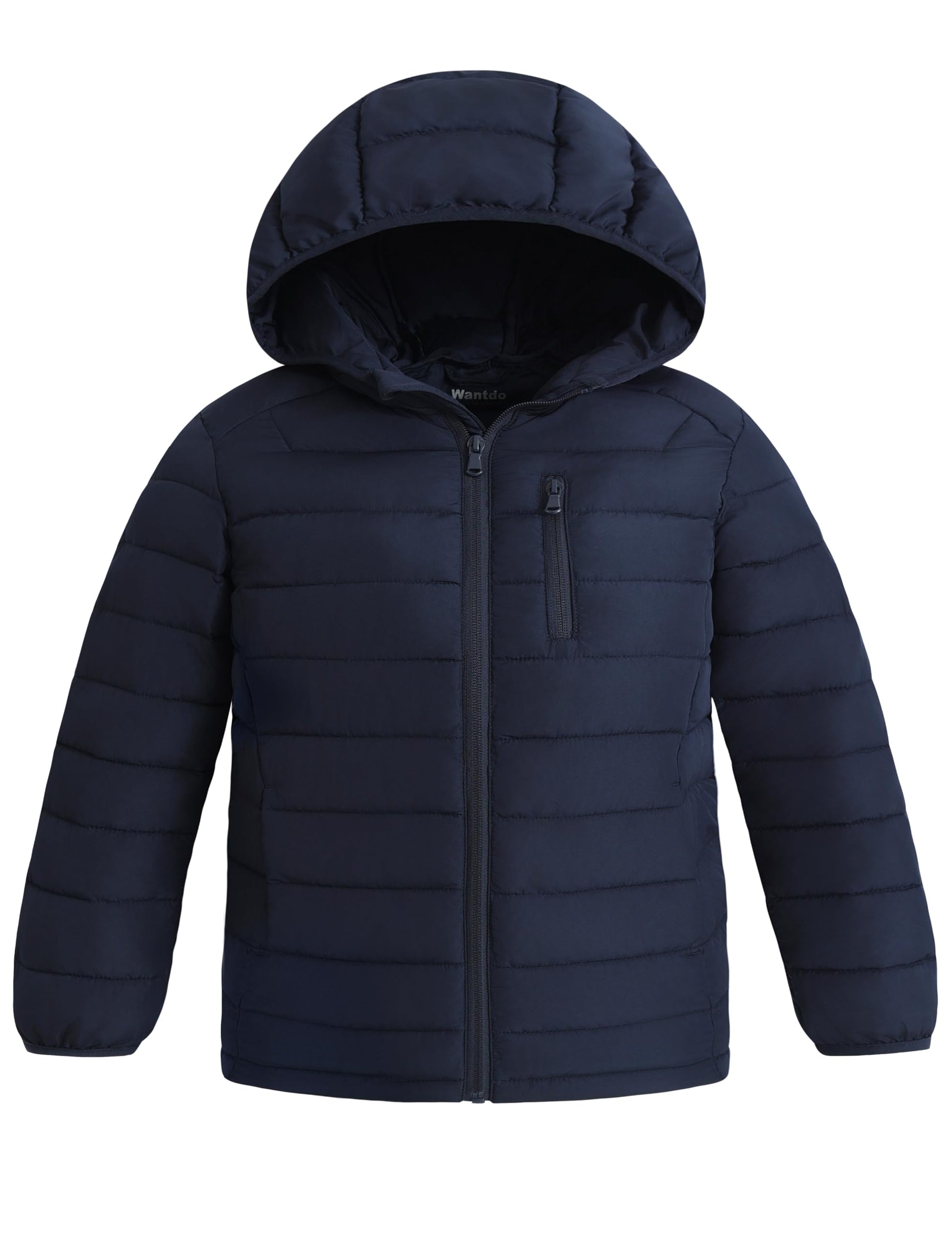 wantdo Boy's Packable Winter Light Jacket Warm Puffer Jacket Hooded Navy 10-12
