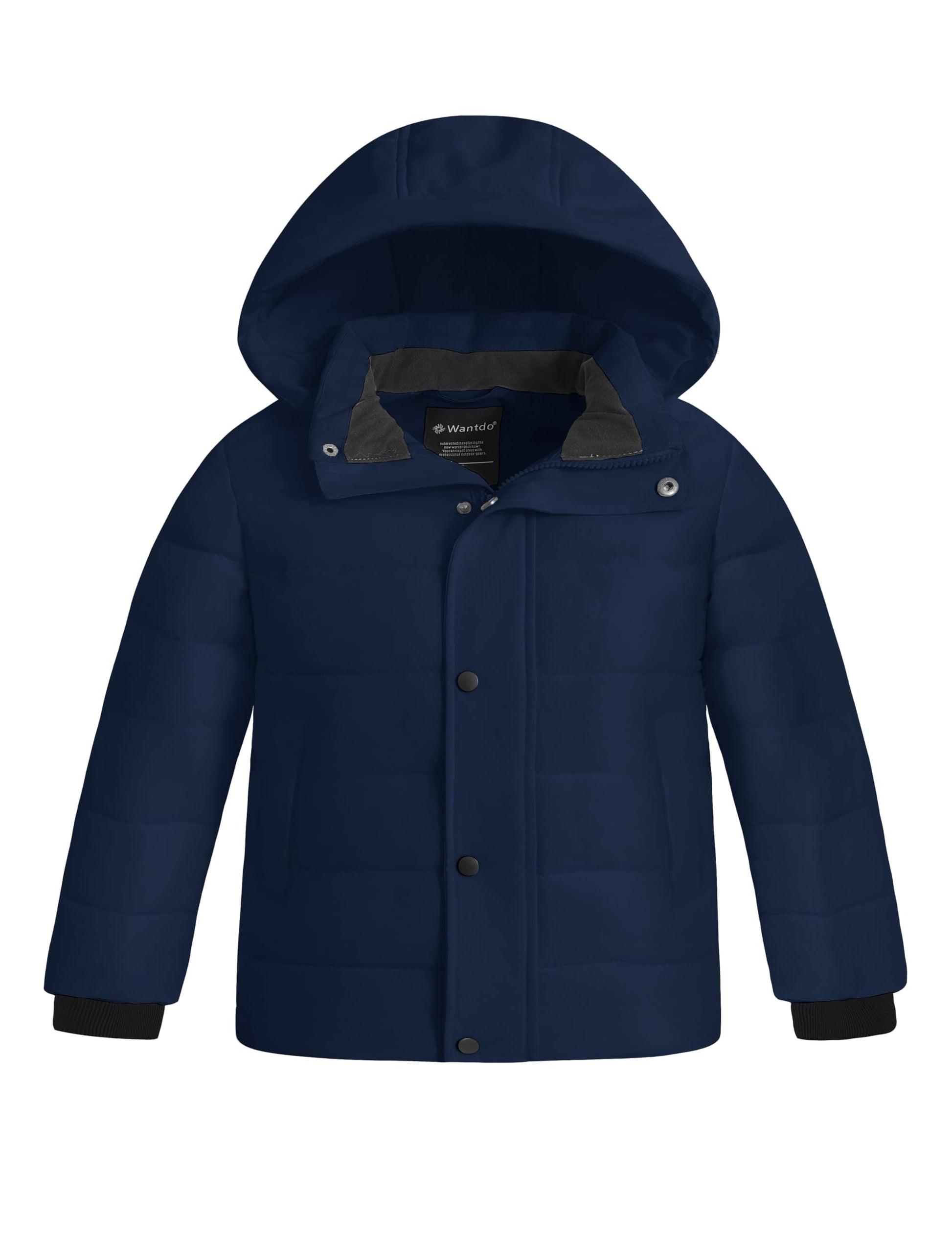 wantdo Boys' Warm Winter Coat Waterproof Puffer Jacket with Hood Navy 10-12