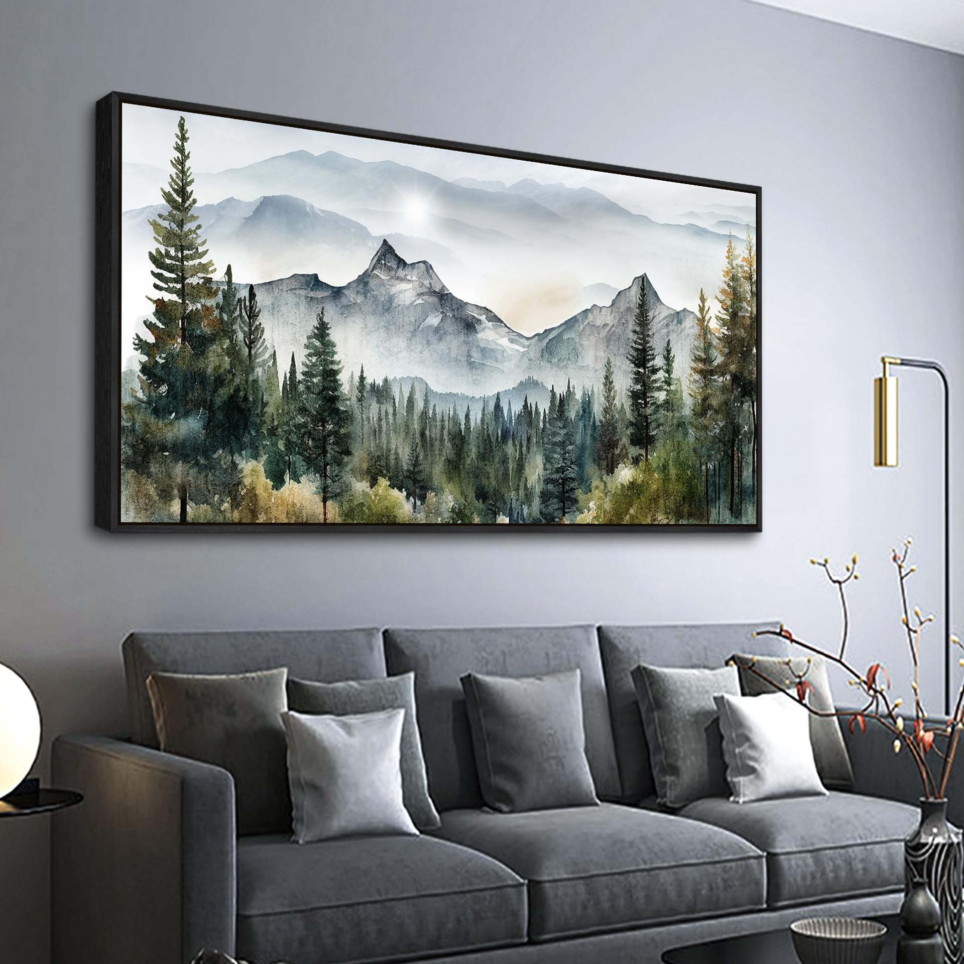 Wapluam Abstract Mountain Landscape Wall Painting Black Framed Canvas Wall Art For Living Room Bedroom Large Wall Decor Modern Home Decor Office Wall Decorations Pictures Ready To Hang ArtWorks