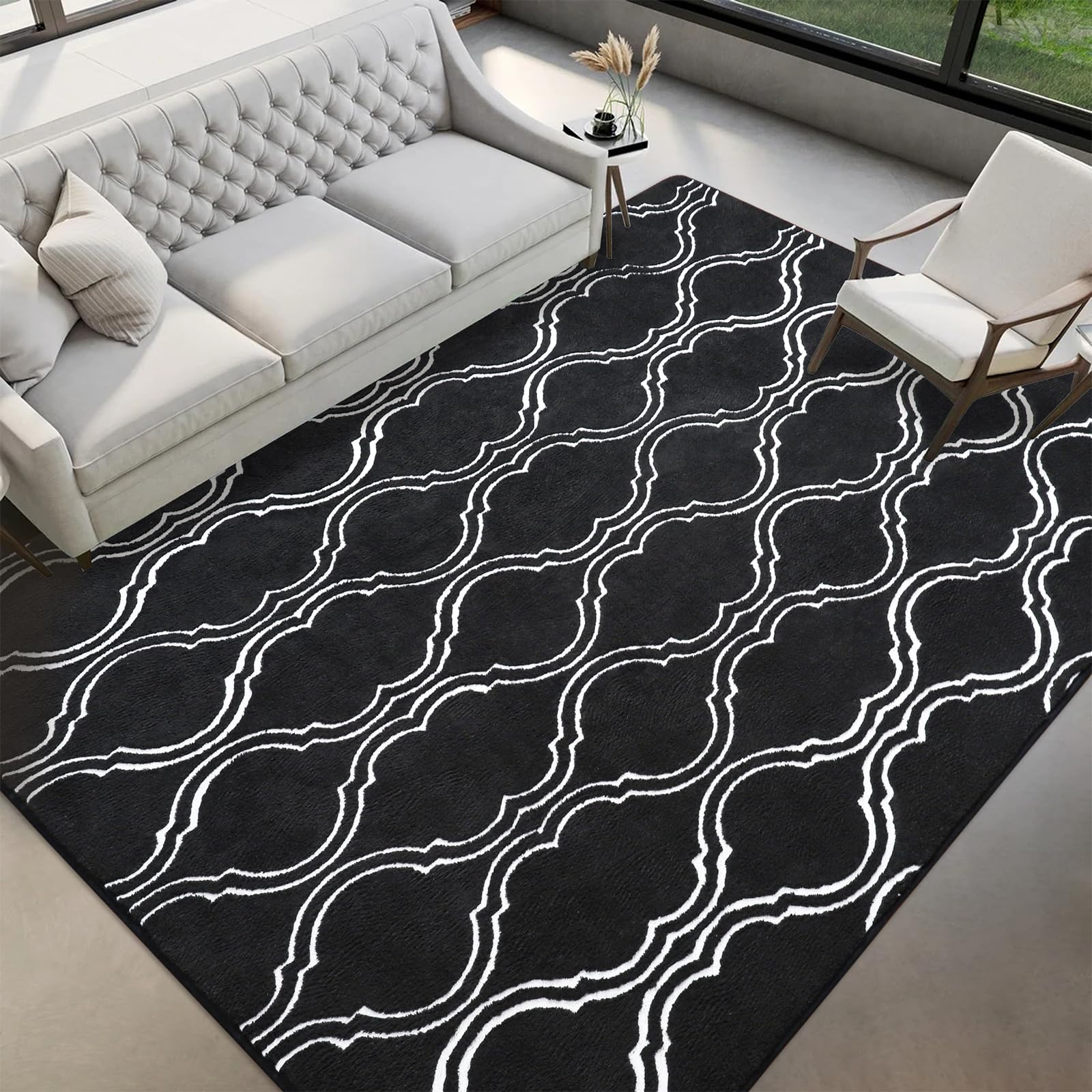 Washable Rugs for Bedroom Living Room, 4x6 Black Fluffy Shag Area Rug, Soft Modern Indoor Carpet for Dorm Boys Girls Kids Room Nursery Playroom Office Floor Rug Home Decor, Black/White