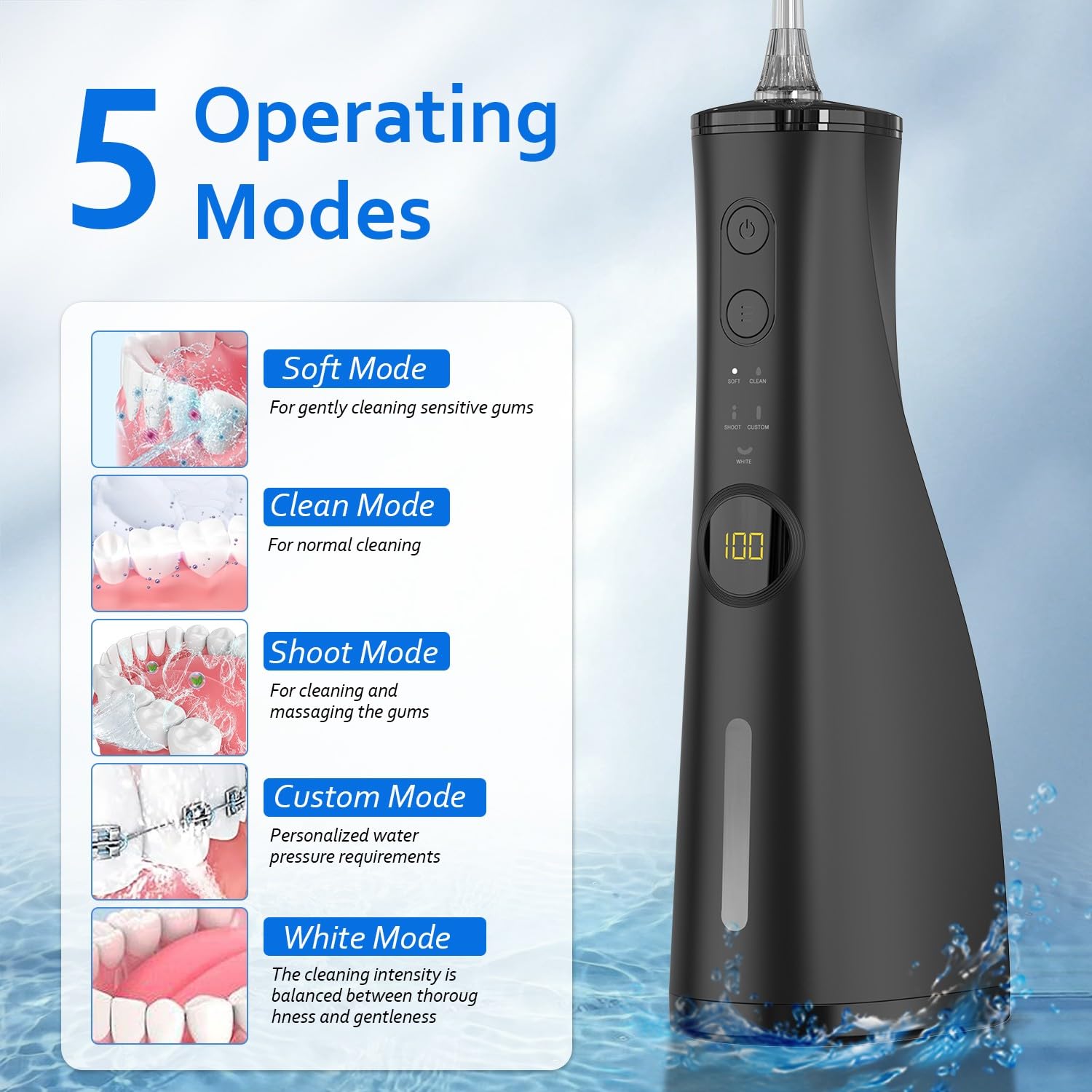 Water Dental Flosser Electric Oral Irrigator 300ML Large Tank 5 Replaceable Jet Tips IPX7 Waterproof Teeth Cleaner Flossing Cleaning Picks for Home and Travel