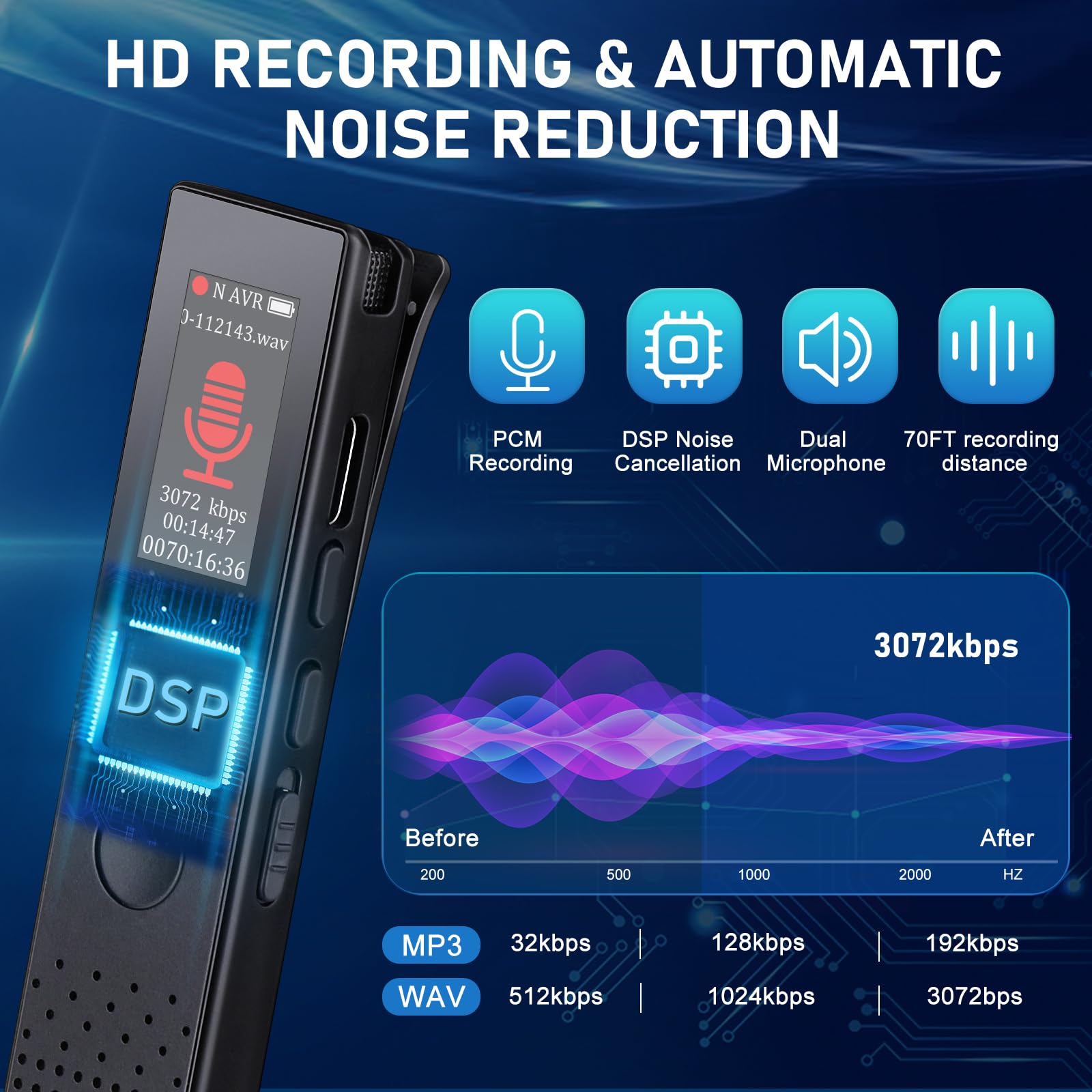 - 【High-Quality 3072kbps Recording】: Capture delicate audio details with near-lossless quality, perfect for music performances or vocal dialogues.