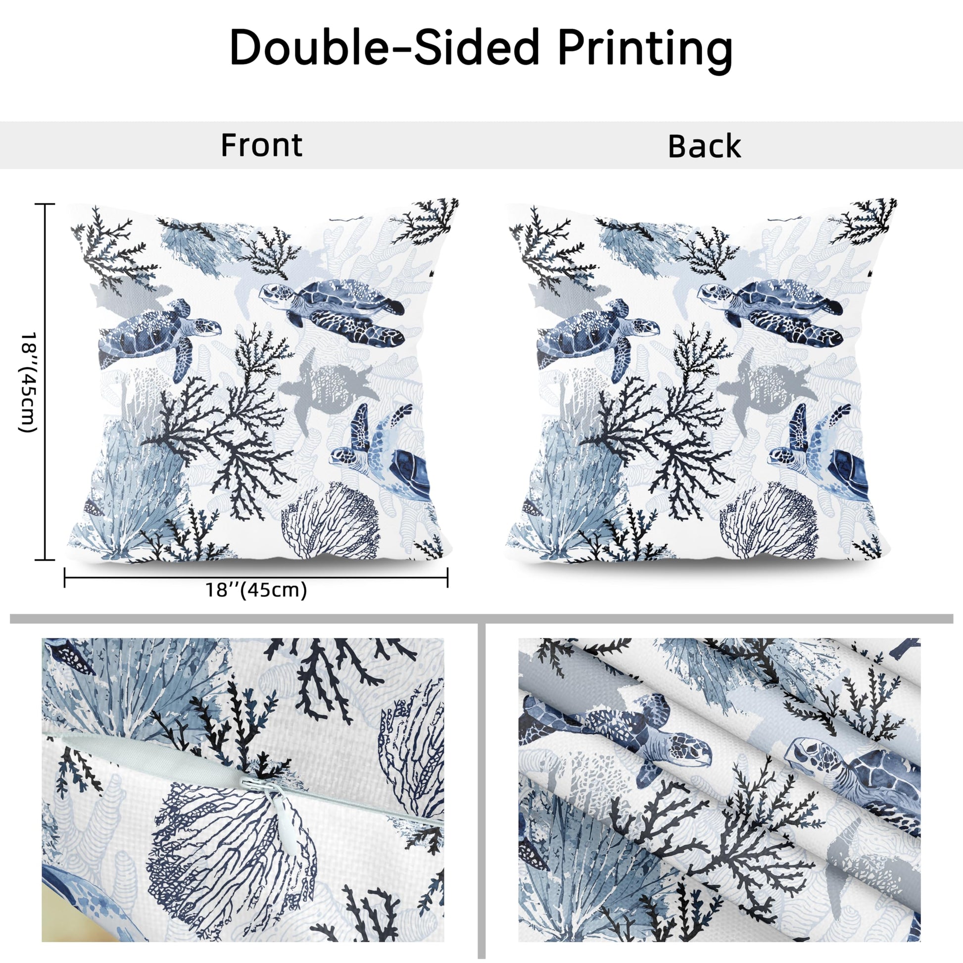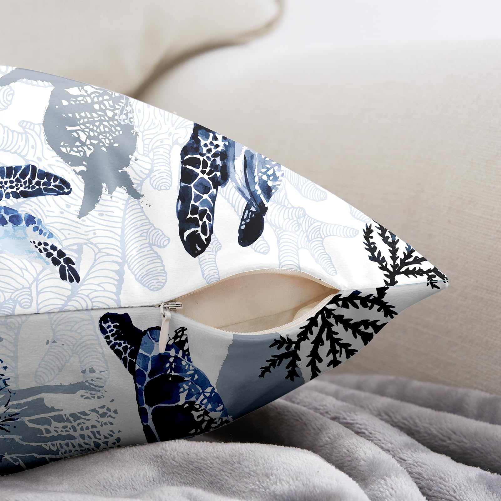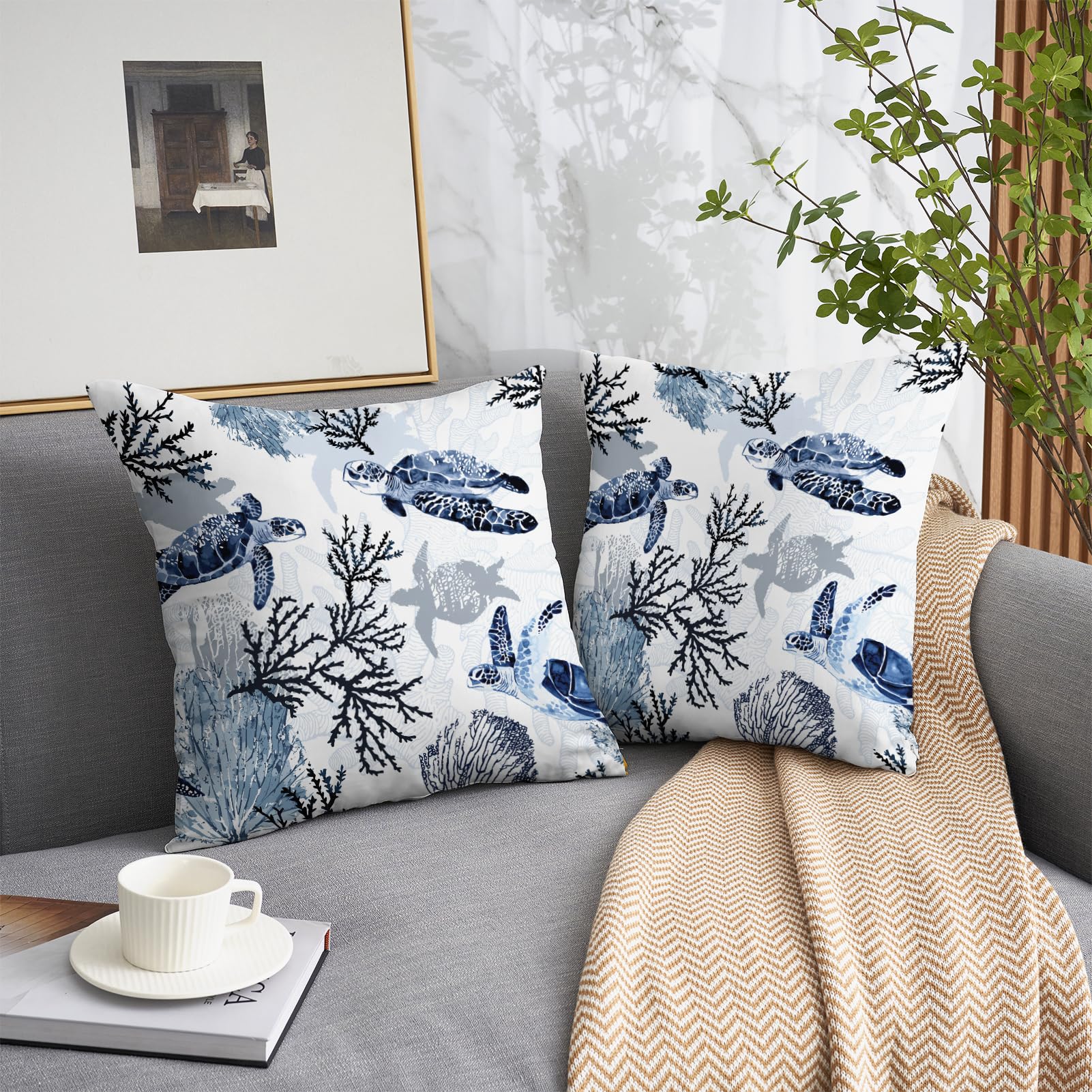 weesire Nautical Coastal Throw Pillow Covers Set of 2 Beach Themed Ocean Coral Sea Turtle Decorative Pillow Cases Outdoor Sofa Cushion Cover for Bedroom Living Room, 18x18, Blue