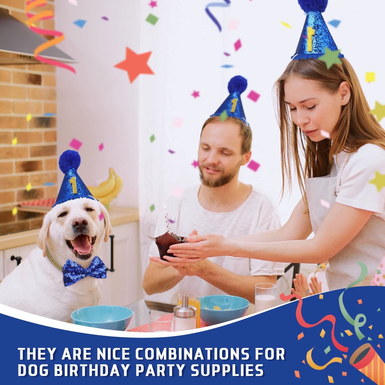 Weewooday Dog Birthday Party Supplies Birthday Boy Girl Cake Bandana Triangle Scarf Party Hat Dog Bow Tie Collar with Numbers for Large Medium Small Dog Puppy 1st Birthday(Elegant Style,Medium)