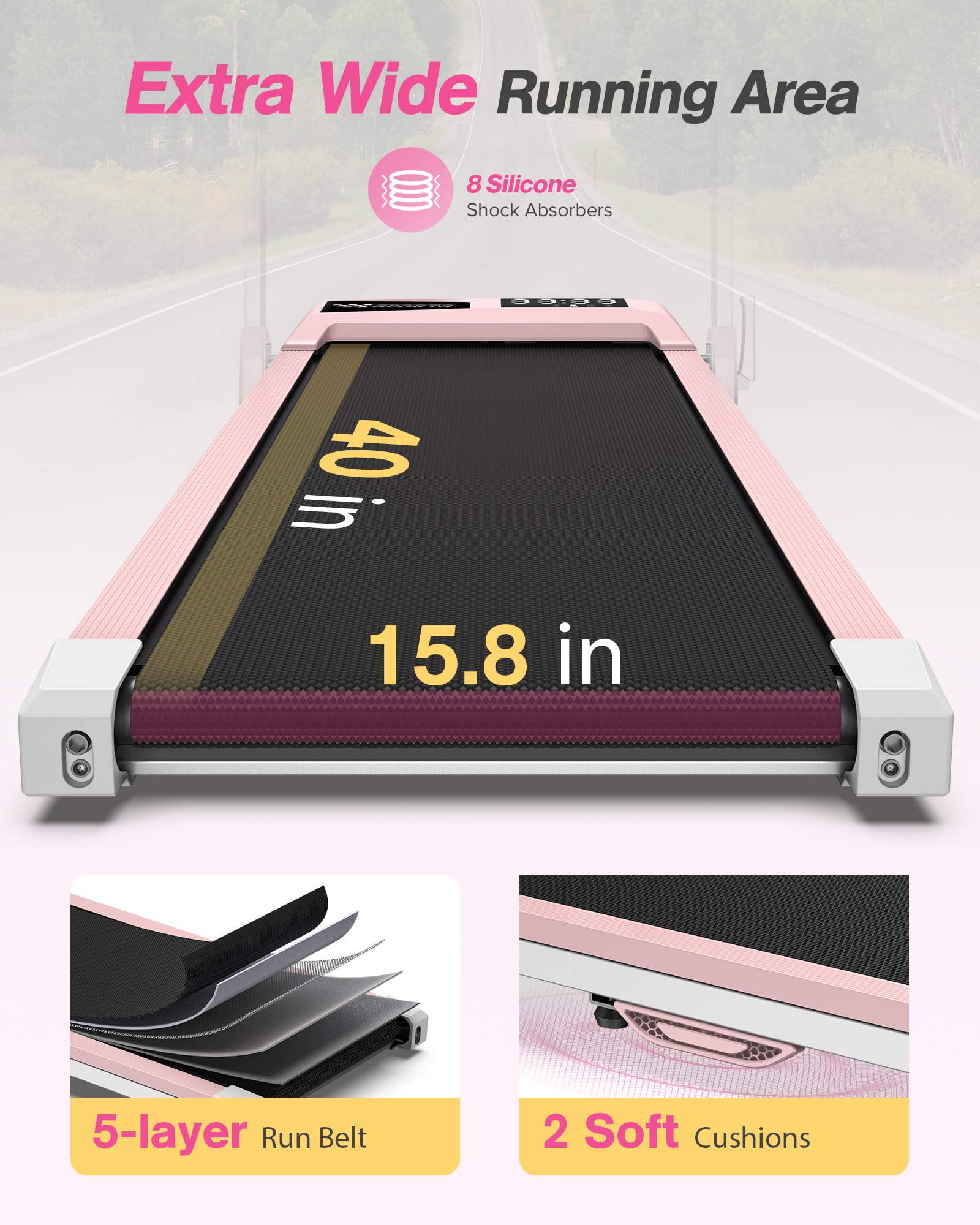 - Anti-Slip Belt & Shock Absorption: The Wellfit treadmill offers a spacious 40'' x 15.8'' running area with 5 layers of anti-slip running belt for added safety. Equipped with 8 silicone shock absorbers and 2 soft rubber pads, it delivers superior cushioning to protect your knees and muscles, ensuring a comfortable and safe running experience.
