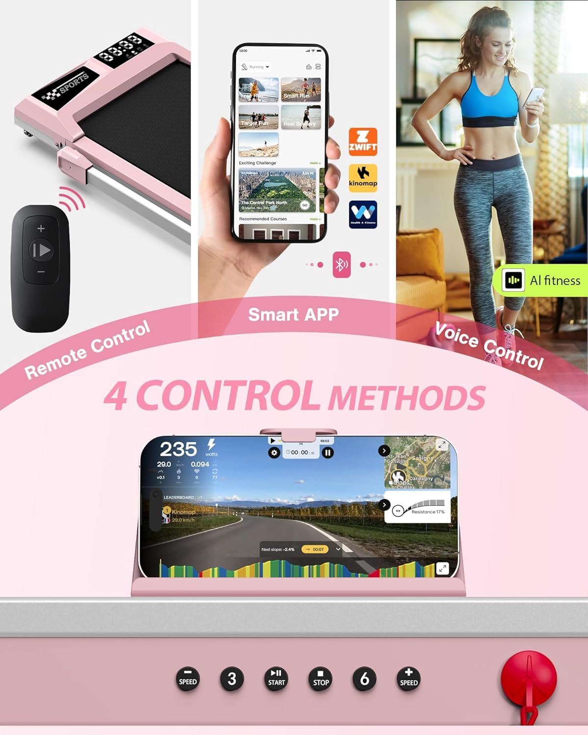- Get More Fun from Fitness Apps: You can easily control the treadmill using the voice control feature of the WellFit app while running or walking. The Wellfit App also offers a variety of preset workout programs that provide you with different challenges and goals to keep your workouts interesting and effective. No subscription fee! Plus, the treadmill is compatible with popular fitness apps like Zwift and Kinomap, making it easy to match your unique workout style and stay motivated.