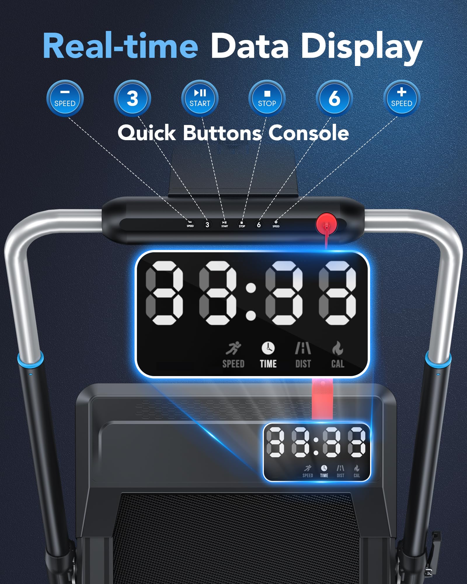 - EASY SETUP: Say goodbye to the hassle of complicated assembly. Our folding treadmill is designed for effortless setup - simply unfold and start your workout. It's a hassle-free solution for those who want to get straight to their fitness routine without the frustration of assembly.