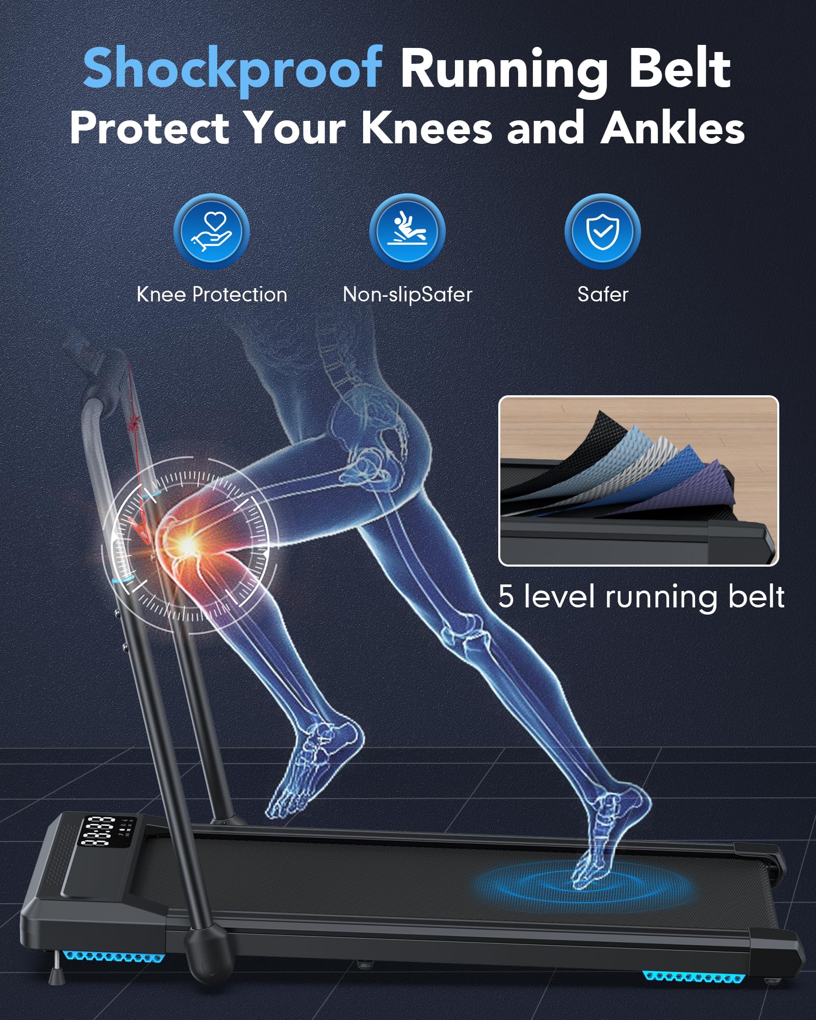 - WORK AND WORKOUT: Transform your workday with the under standing desk folding treadmill. Stay active and energized while you work, helping to combat the negative effects of prolonged sitting. Boost productivity and improve your overall well-being with this innovative combination of work and exercise.